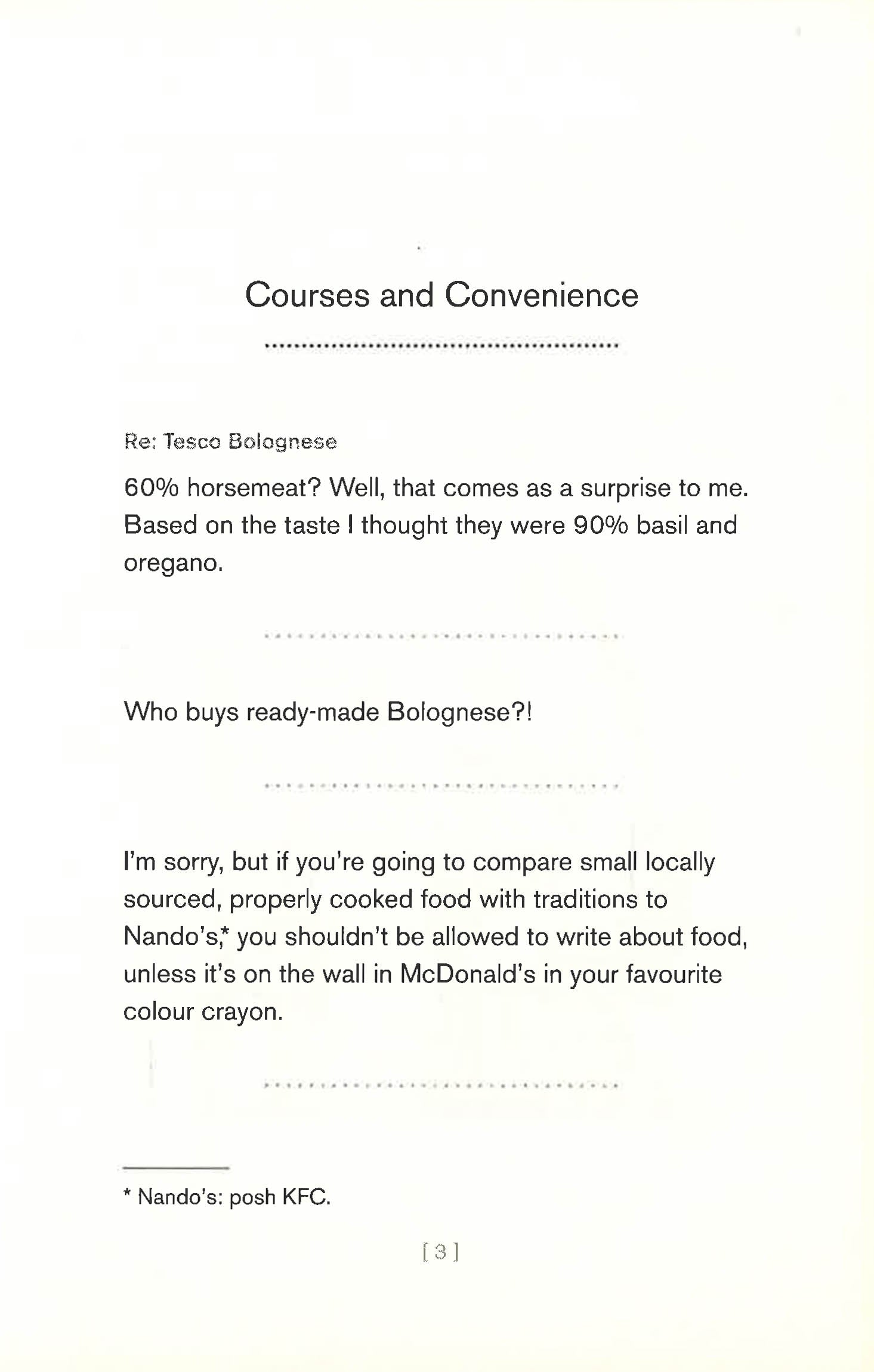 The Guardian publishes over forty thousand reader comments a day below the line. This is a miscellany of the best and most baffling thoughts from their witty, well-meaning readers. In the book, Guardian readers ponder the big questions ('Am I the only one who thinks that ham and cheese is a ghastly mix?') reflect with nostalgia on better days ('Airline employees were so much more agreeable back when they were all drunk') and share hard-won wisdom ('Dishwashers make lousy salmon poachers').
