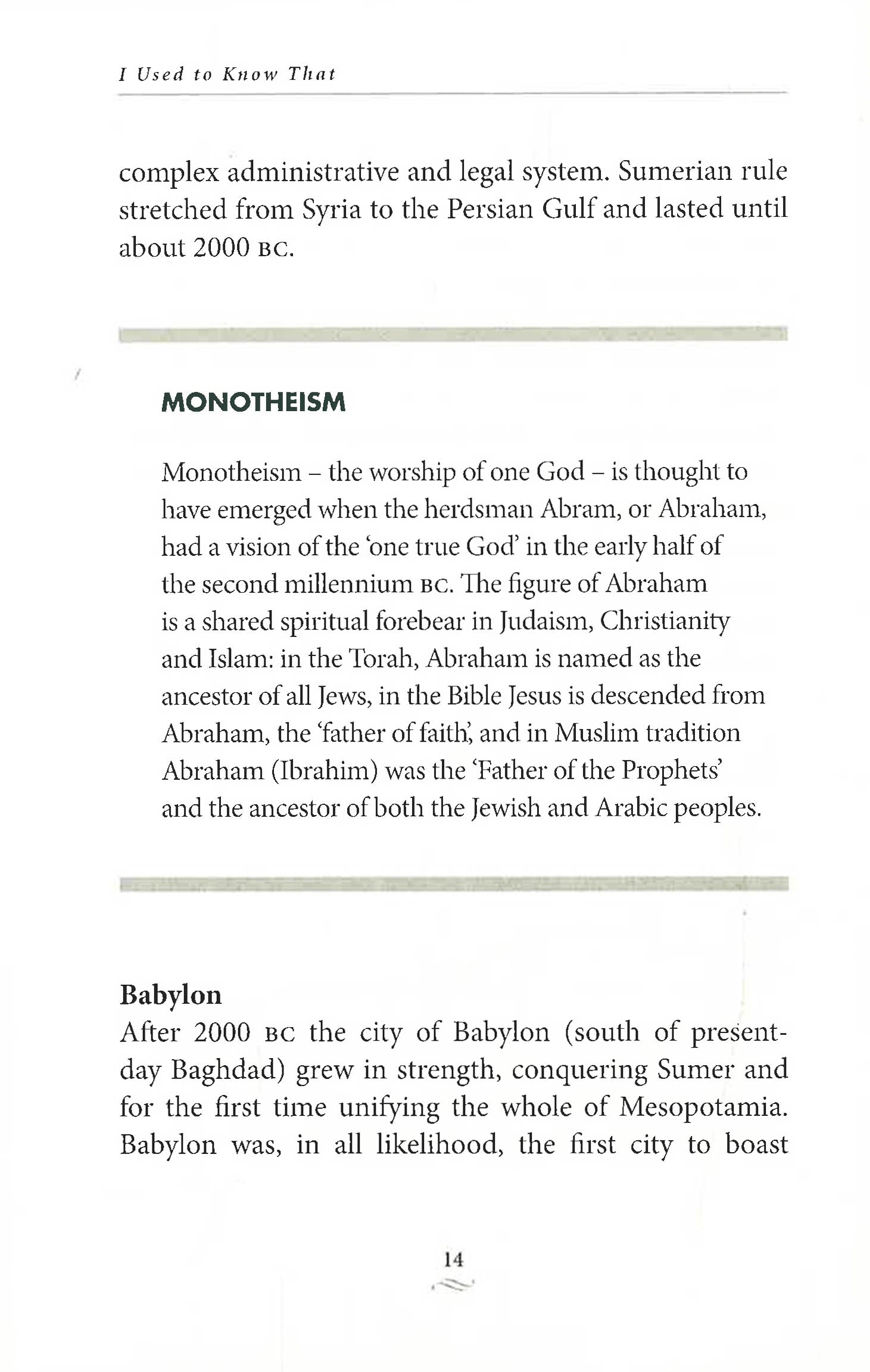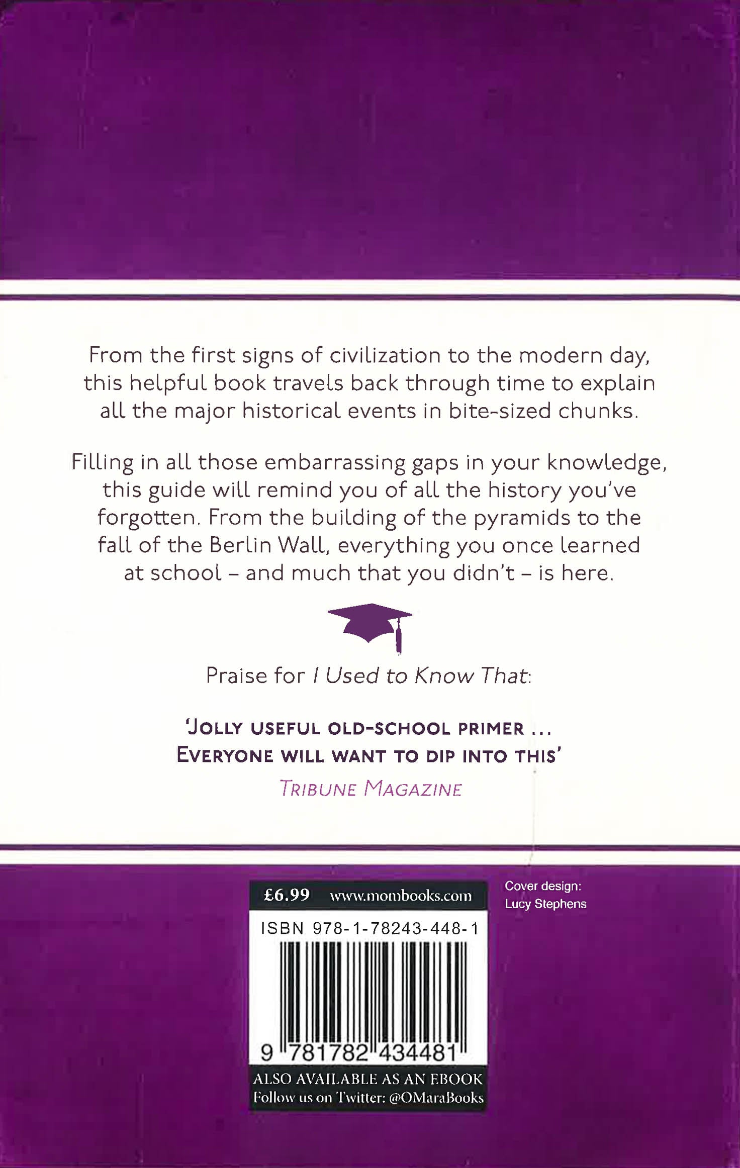 If your response to a mention of the Wars of the Roses, the Sumerians or the Reformation is, 'Hmm, I've heard of that - what was that again?', then this is the book for you. This entertaining yet informative book travels back through time to fill in those embarrassing gaps in your knowledge, from the invasions of Britain, the Renaissance and the Cold War, to the American, French and Russian Revolutions, the World Wars ... and everything else you have forgotten from your school history lessons. In I Used to Know That: History, information is broken down into manageable, bite-sized chunks, refreshing your memory of all those things you once knew but have forgotten, and filling you in on the bits that the school syllabus didn't include. From building the pyramids in Egypt to the fall of the Berlin Wall, everything you used to know - and much that you didn't - is here.