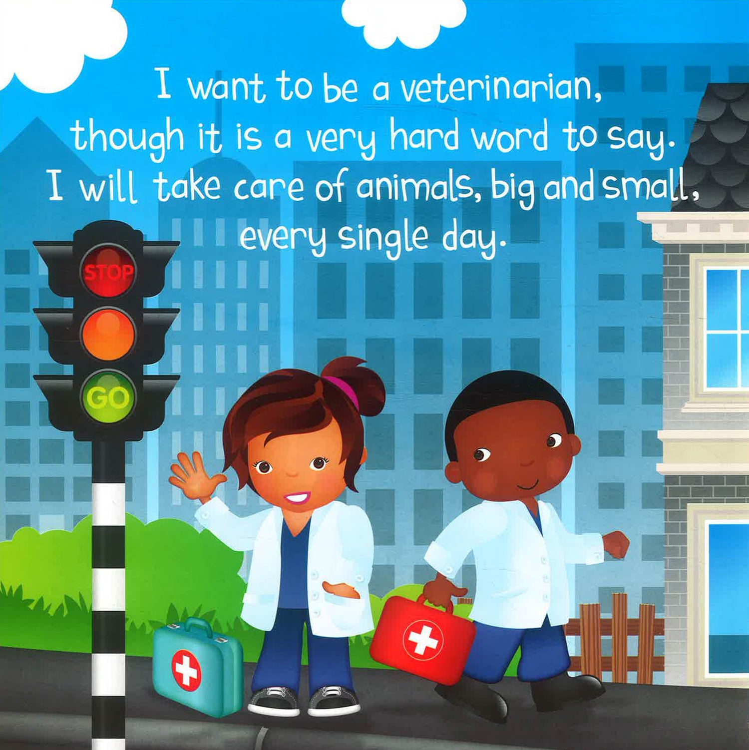 I Want to be a Veterinarian: I want to be a veterinarian, though it is a very hard word to say. I will take care of animals, big and small, every single day.