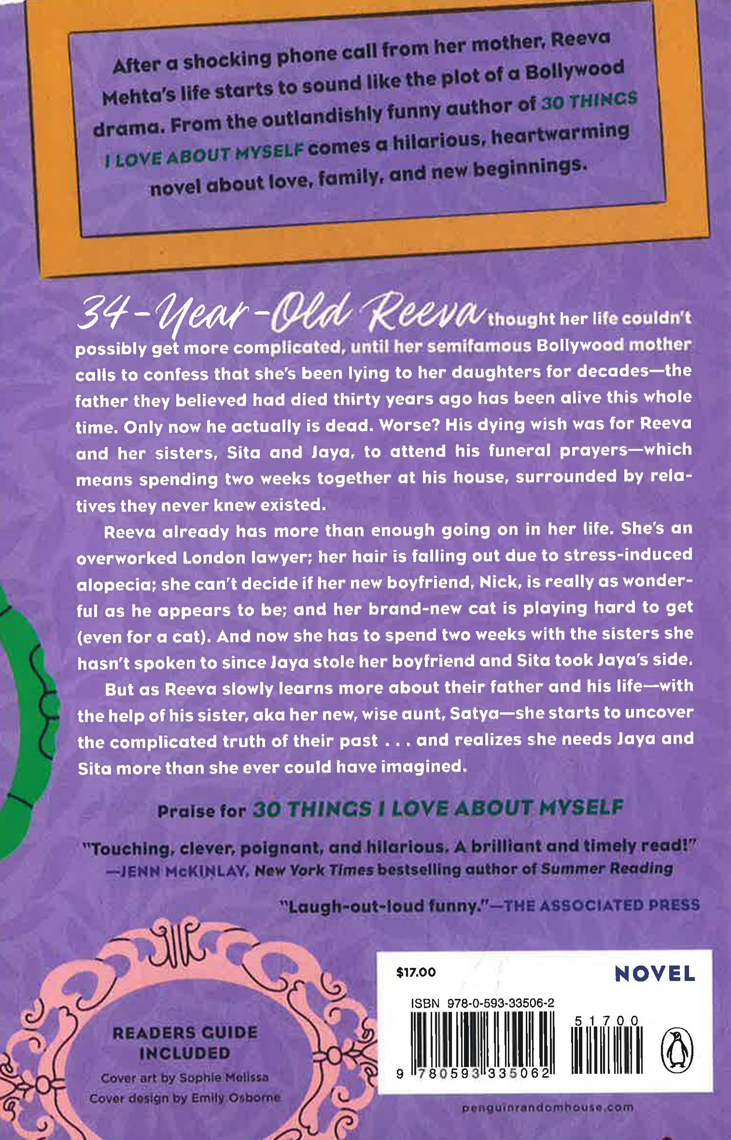 Thirty-four-year-old Reeva thought her life couldn't possibly get more complicated, until her semi-famous Bollywood mother calls to tell her that she's been lying to her daughters for decades--the father they thought died thirty years ago has been alive this whole time. Only now he actually is dead. Worse? His dying wish was for Reeva and her sisters Sita and Jaya to attend his funeral prayers--which means spending a fortnight together at his house, surrounded by relatives they never knew existed.