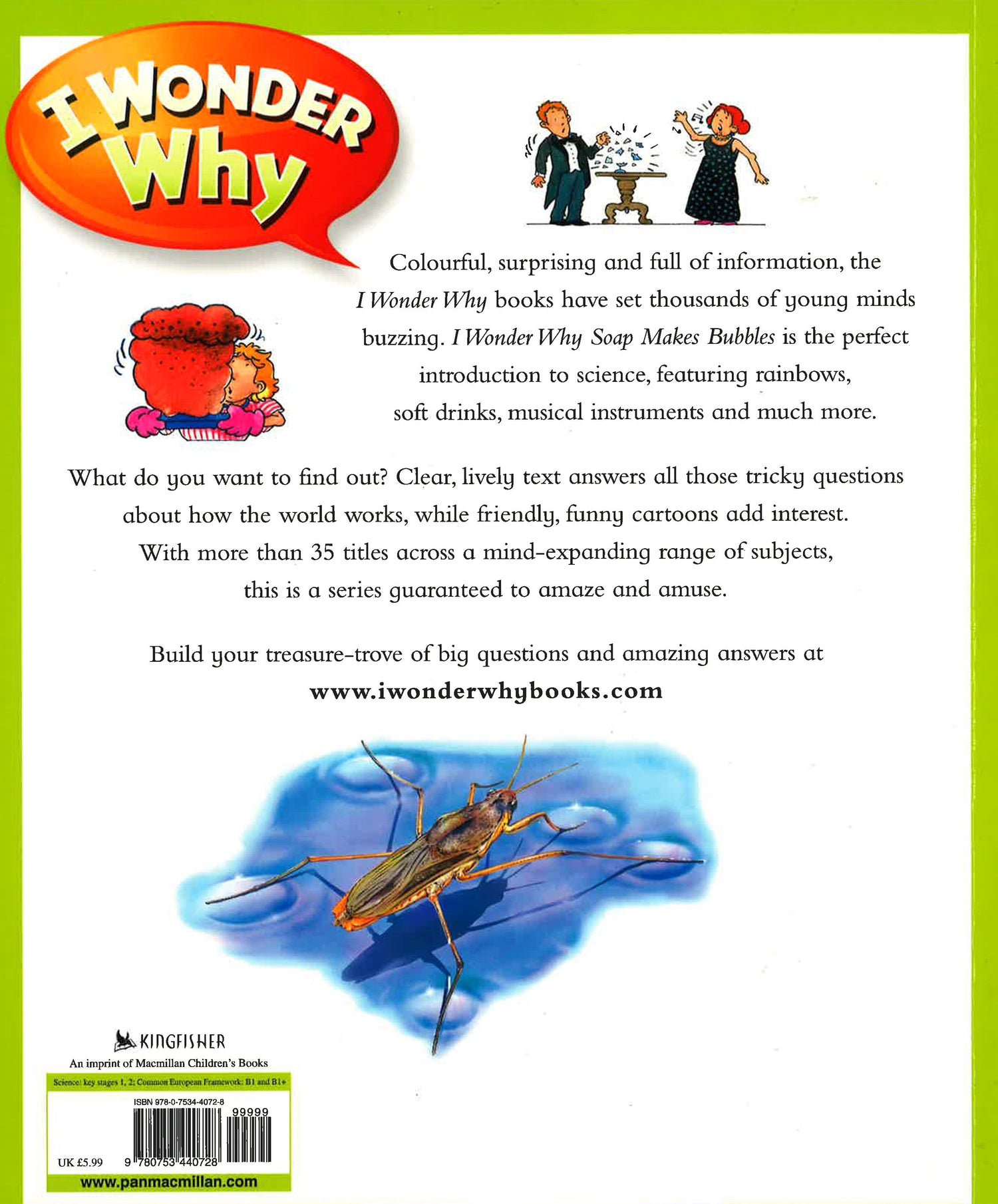 Designed both to entertain and to inform, I Wonder Why Soap Makes Bubbles by Barbara Taylor answers all of those tricky questions about science in everyday life and how the world works. Starting with understanding the world around you with questions such as "what makes cakes rise?" and "Why does a teaspoon get hot when you stir cocoa?" to understanding the natural world with questions such as "why do shadows happen?" and "Why is the grass green?"Combining incredible information with awesome artwork, it is guaranteed to amaze and inspire!