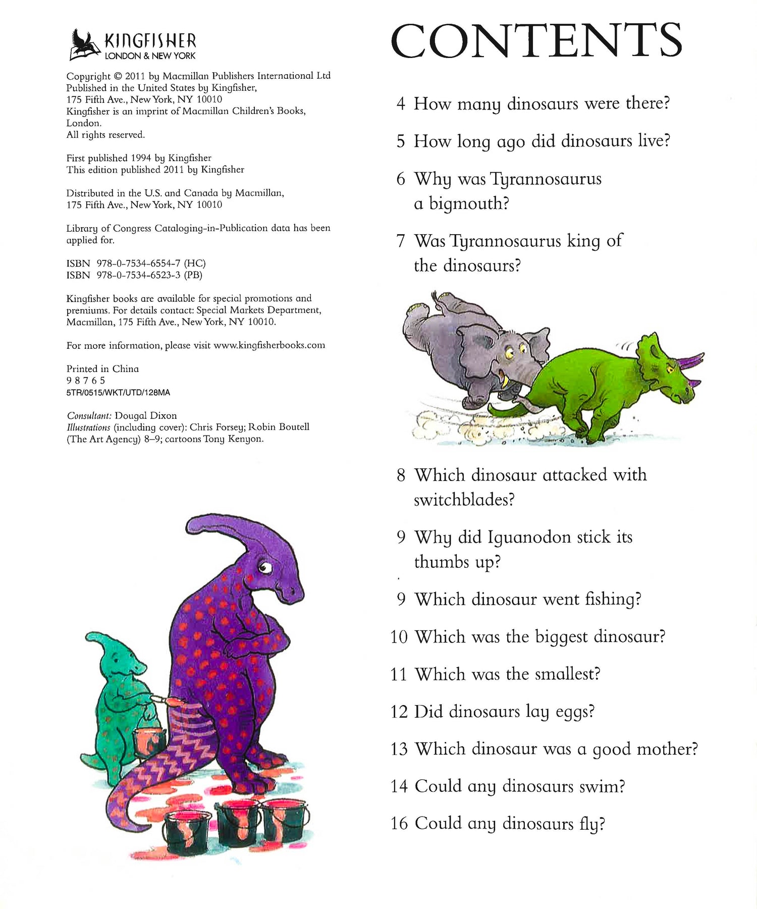 Taking as its starting point a child's natural desire to understand the world, this is a series designed to entertain and to inform. This book focuses on dinosaurs. Each spread has answers to between one and four questions, backed up by snippets of relevant extra information and cartoons.