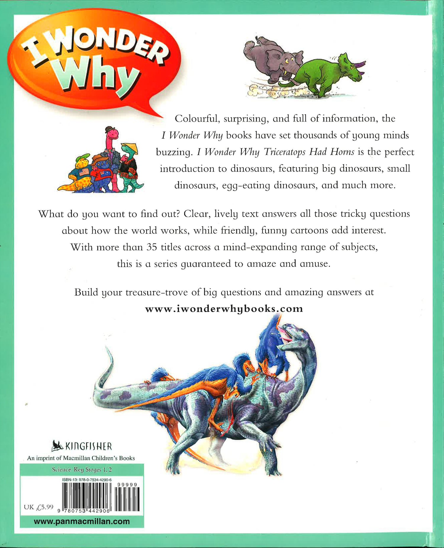Colourful, surprising and full of information, the I Wonder Why books have set thousands of young minds buzzing. I Wonder Why Triceratops Had Horns is the perfect introduction to dinosaurs, featuring big dinosaurs, small dinosaurs, egg-eating dinosaurs and much more.