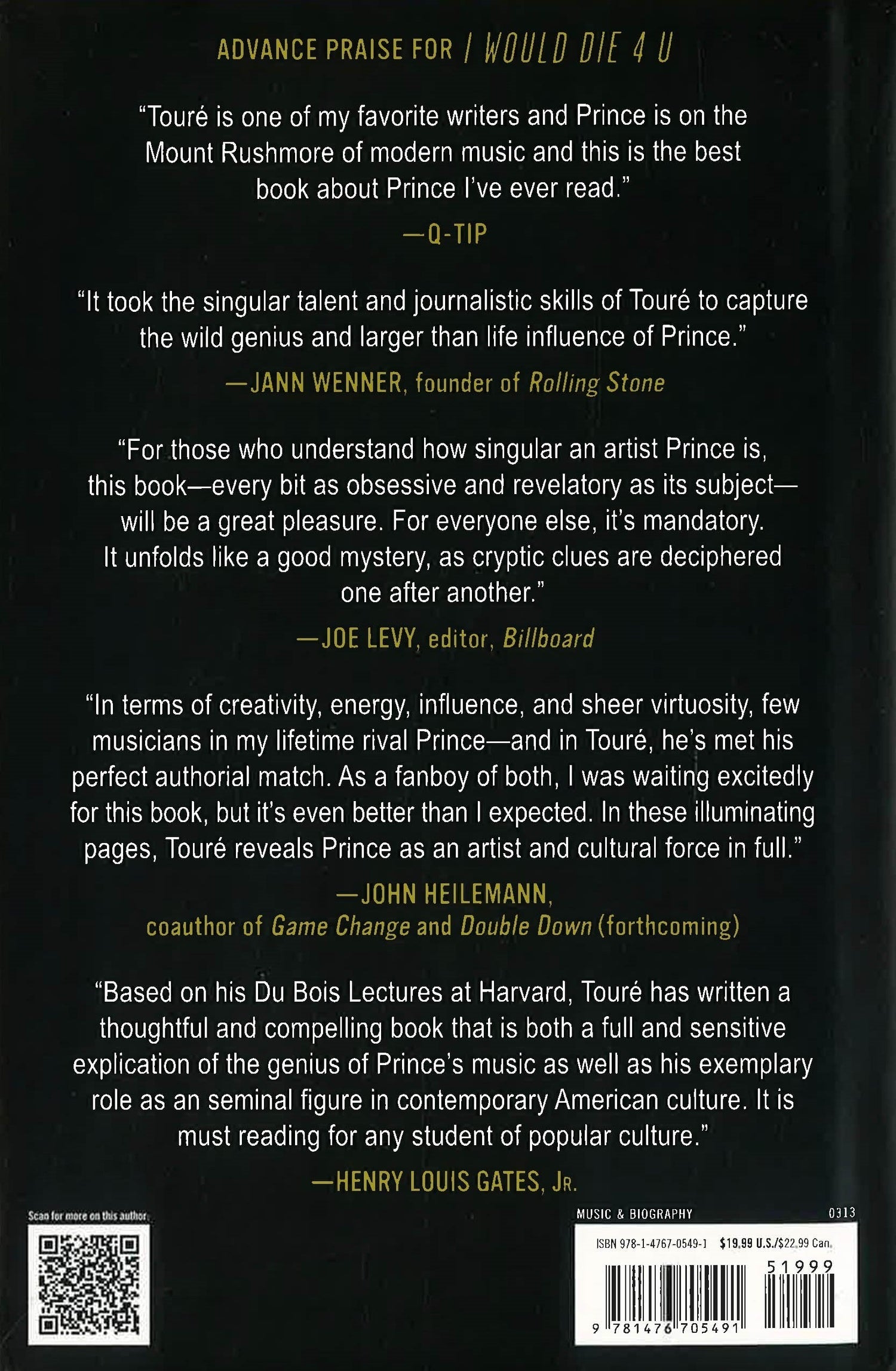 Drawing on new research and enlivened by Touré’s unique pop-cultural fluency, I Would Die 4 U relies on surprising and in-depth interviews with Prince’s band members, former girlfriends, musicologists, and even Bible scholars to deconstruct the artist’s life and work.