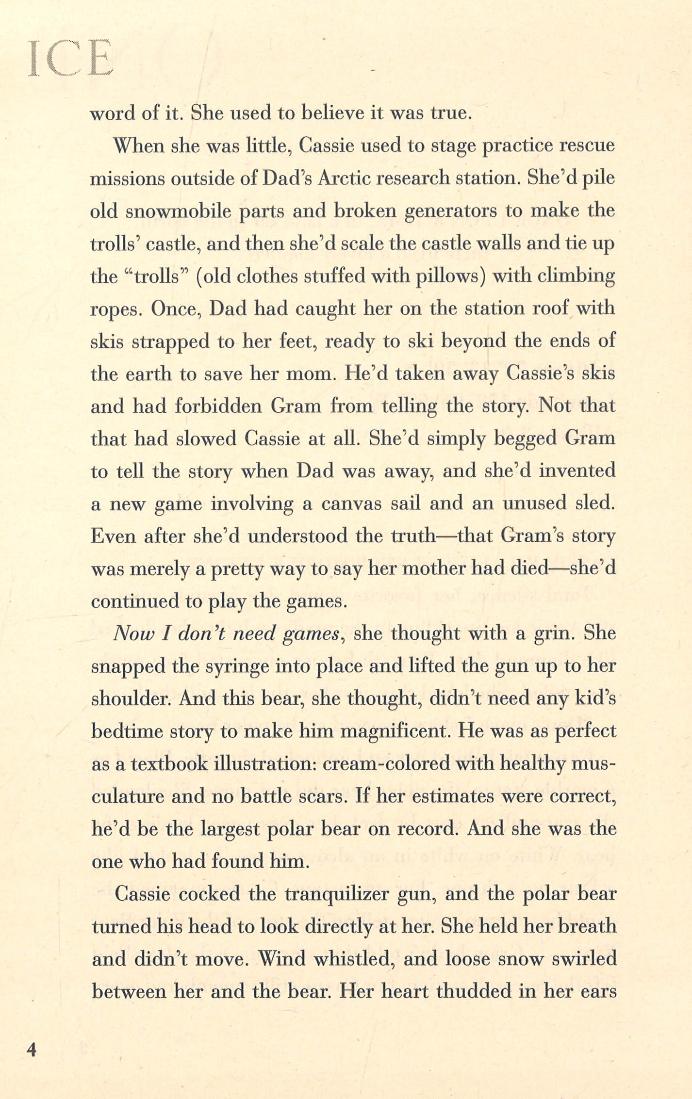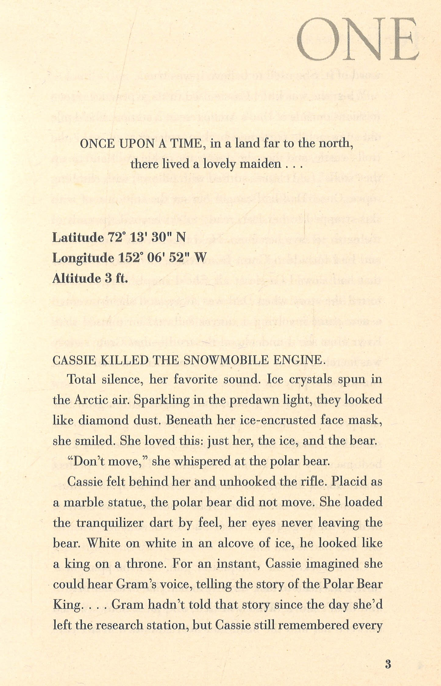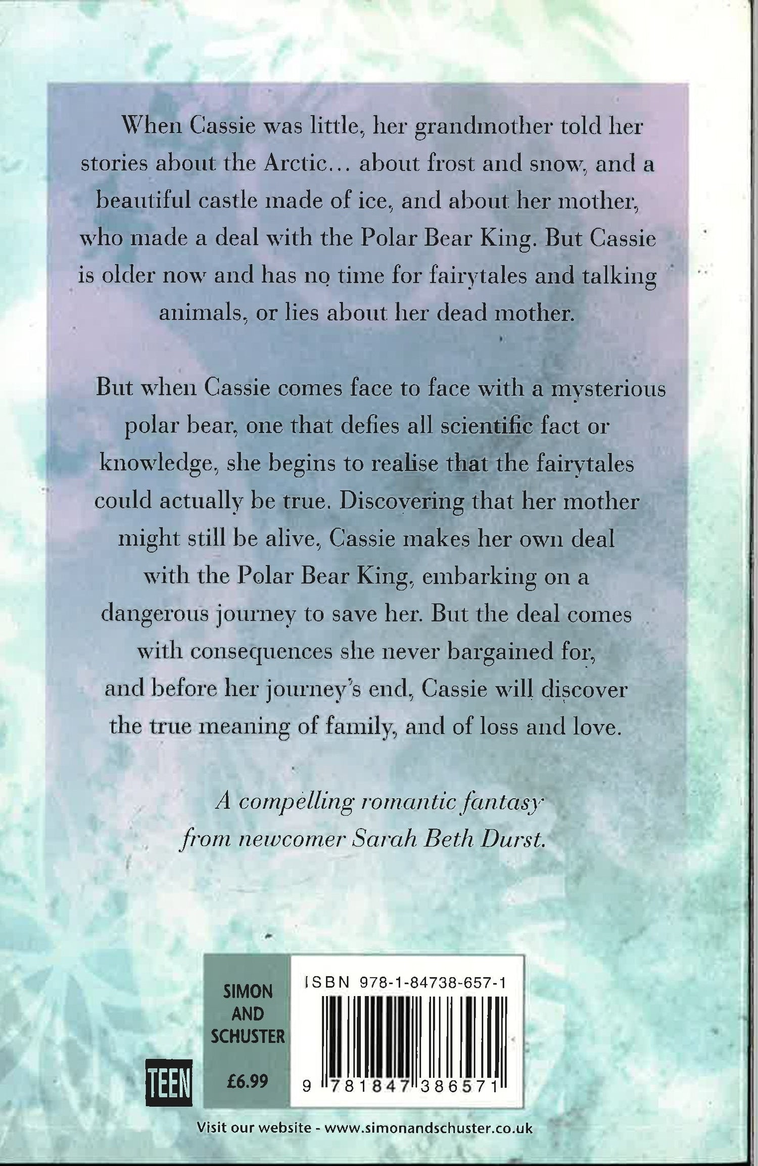 When Cassie was little her grandmother would tell her stories about the Arctic...stories about snow and ice, about a beautiful castle made of ice, and about her mother, who made a deal with the Polar Bear King and was swept away to the ends of the earth to become a prisoner of the trolls. Cassie is older now and has no time for fairytales and talking animals, or lies about her dead mother. Living with her father at the Arctic research centre, she is determined to become a leading scientist and researcher. But when Cassie comes face to face with a mysterious polar bear, one that defies all scientific fact or knowledge, she begins realise that the fairytales could actually be true. Armed with the knowledge that her mother might be alive, Cassie makes a deal with the Polar Bear King, and embarks on a dangerous journey against time to save her. But her agreement with the Polar Bear King comes with consequences she never bargained for, and before her journey's end Cassie will discover the true meaning of love and family, and loss. A compelling romantic fantasy set in the beautiful frozen Arctic.