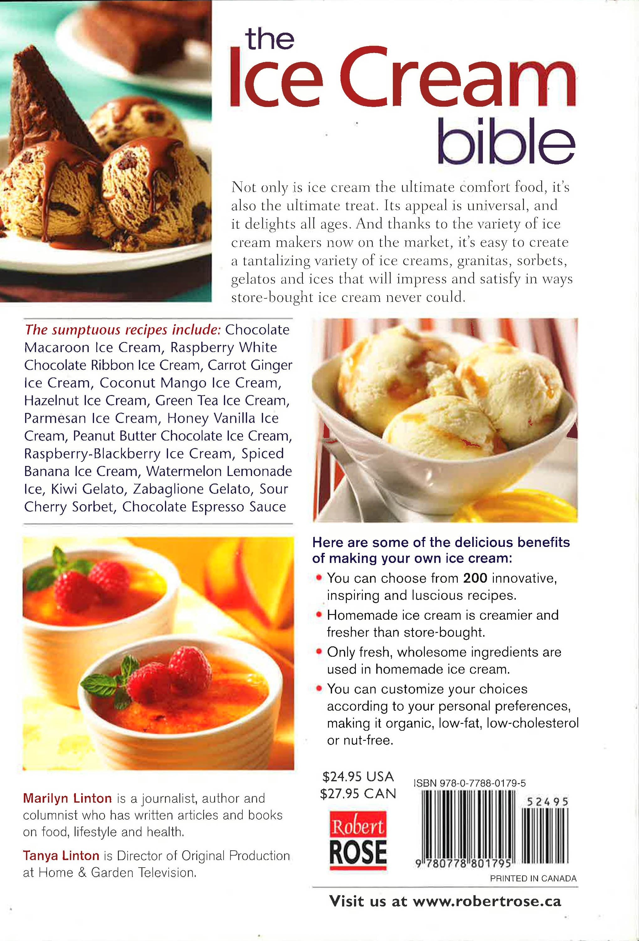 Capturing the essence of summer with homemade ice creams, sorbets, gelatos and ices. Using the easy and delicious recipes in The Ice Cream Bible and an ice cream maker, home chefs will have everything needed to make a range of luscious frozen desserts to satisfy everyone all year round. Here is a selection of the mouthwatering recipes: Ice creams raspberry white chocolate, pine nut and honey, hazelnut, cookies and creme, mango creme brulee, lemon dill Ices, sorbets and granitas pomegranate ice, spicy plum sherbet, pear ice, almond snow granita, frozen lemon meringue pie, chili honey lime sorbet, berry banana ice, black pepper and berry ice, ice wine ice, star anise and mandarin orange ice Gelatos honey-walnut gelato, grapefruit lime gelato, super-fast milk gelato, pear-gingerricotta gelato, pear and buttered pecan gelato, toated pine nut gelato, milky gelato. The authors also provide expert guidance on purchasing a suitable ice cream maker, dozens of fabulous recipes for sauces, and tips and techniques for making the perfect ice cream every time.
