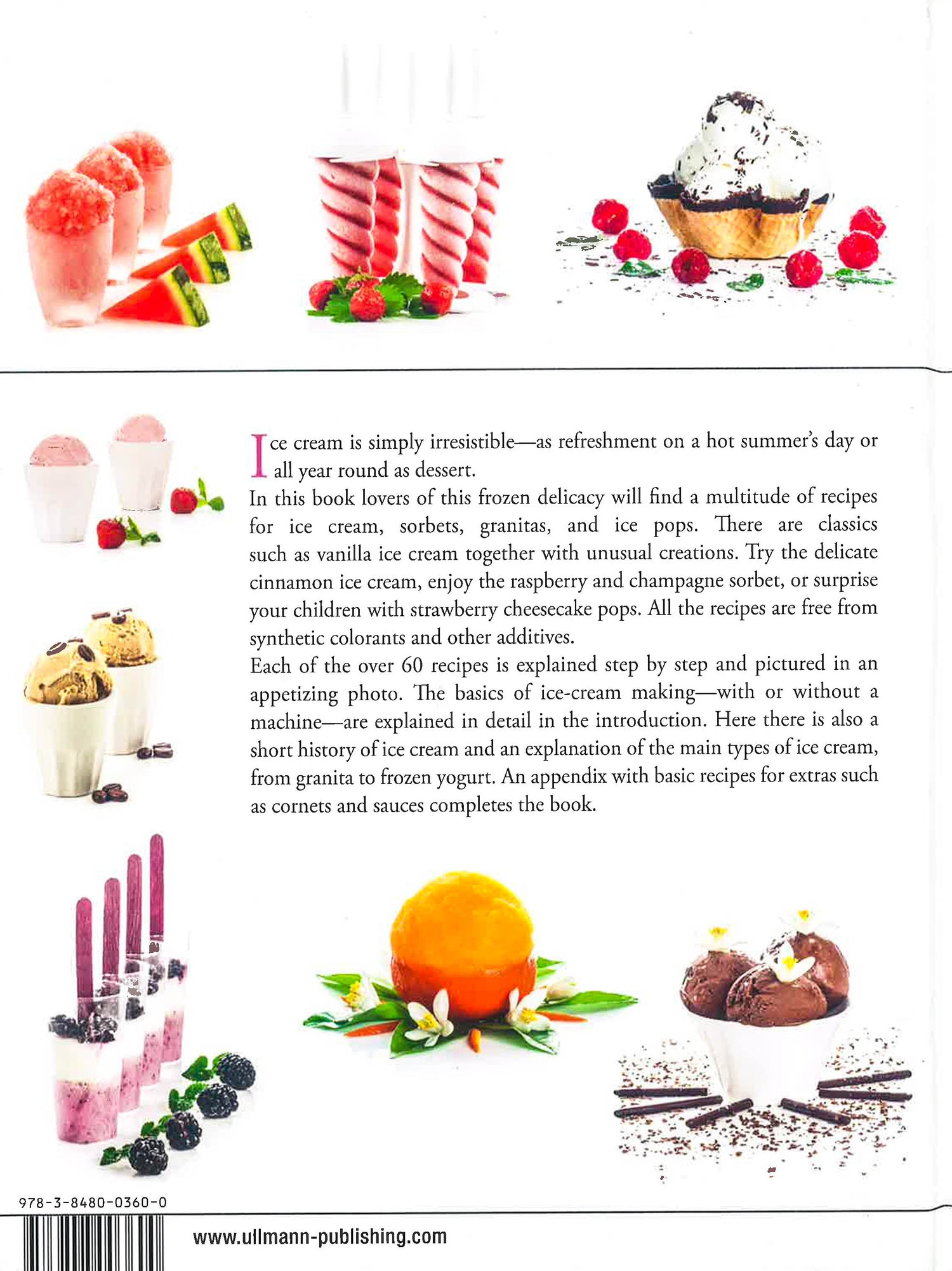 It is simply irresistible as refreshment on a hot summer's day or all year round as dessert. In Ice Cream lovers of this frozen delicacy will find a multitude of recipes for ice cream, sorbets, granitas, and ice pops. There are classics such as vanilla ice cream together with unusual creations. Try the delicate cinnamon ice, enjoy the raspberry champagne sorbet, or surprise your children with strawberry cheesecake popsicles. All the recipes are free from synthetic colorants and other additives. Each of the over 60 recipes is explained step by step and pictured in an appetizing photo. The basics of ice-cream making, with or without a machine, are explained in detail in the introduction. There is also a short history of ice cream and an explanation of the main types of ice cream, from granita to frozen yogurt. An appendix with basic recipes for the main toppings completes the book. So now there is nothing to hinder creative ice cream delectation!