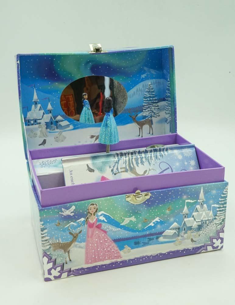 Keep your treasures safe with this pretty trinket box. Wind the key, lift the lid and watch the princess twirl to the beautiful music. Complete with an enchanting storybook inside, this is the perfect gift for little princesses everywhere.