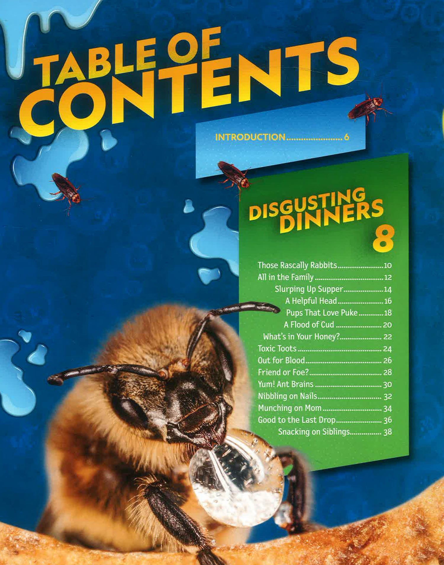 Snappy text, incredible photography, and more cool features add to the learning fun. Ready to chew some fingernails with cockroaches? Dive into the digusting world of animals!