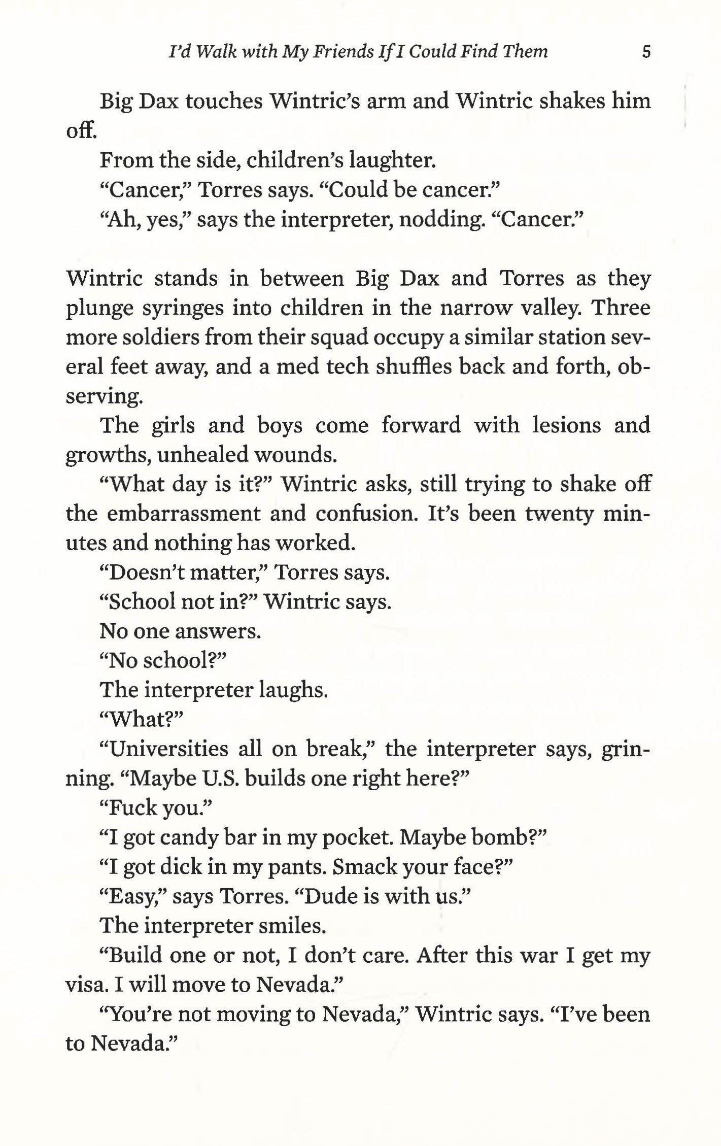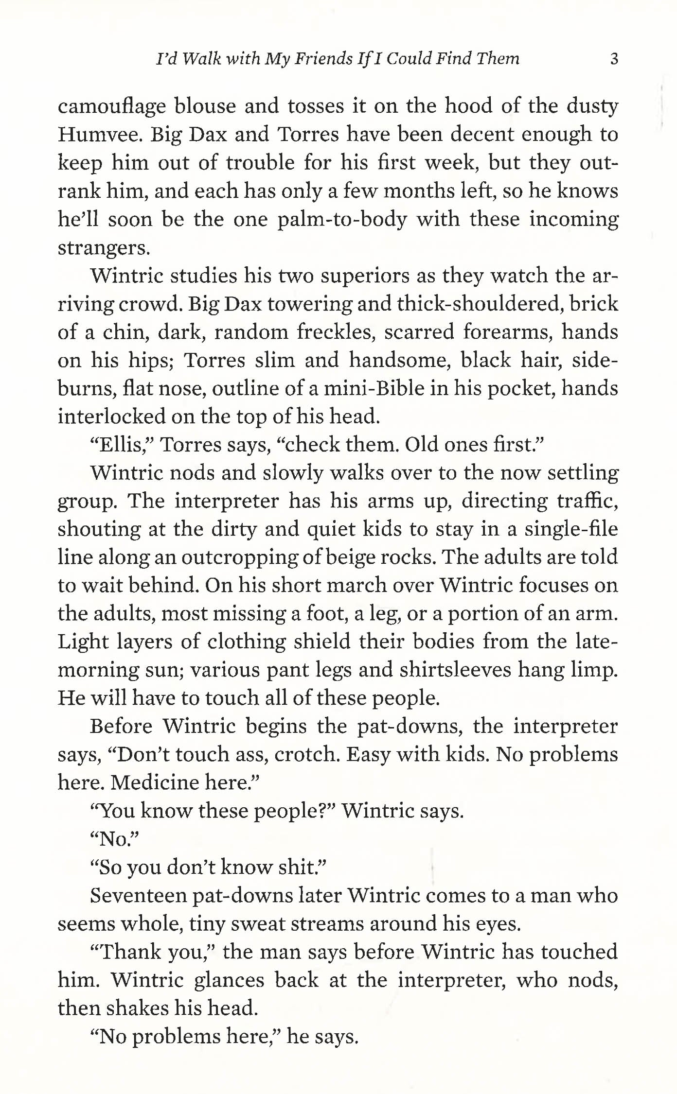 Florida Book Award Gold Medalist Longlisted for the Flaherty-Dunnan First Novel Prize "Symphonic . . . One of the best works of literature to come from these wars." -- storySouth "Powerful." -- Esquire "[An] impressive debut." -- Tampa Bay Times "It's almost like every aspect of life and loss is in there." -- NPR Wintric Ellis joins the army as soon as he graduates from high school, saying goodbye to his girlfriend, Kristen, and to the backwoods California town whose borders have always been the limits of his horizon. Deployed in Afghanistan two years into a directionless war, he struggles to find his bearings in a place where allies could at any second turn out to be foes. Two career soldiers, Dax and Torres, take Wintric under their wing. Together, these three men face an impossible choice: risk death or commit a harrowing act of war. The aftershocks echo long after each returns home to a transfigured world. I'd Walk with My Friends If I Could Find Them is a vital meditation on the weight of war and a humane tale of love, family, and connection at any cost. Jesse Goolsby's fiction and essays have appeared in Narrative, the Kenyon Review, and elsewhere. He is the recipient of the Richard Bausch Short Story Prize, the John Gardner Memorial Prize in Fiction, and other honors. A U.S. Air Force officer, he lives in Tallahassee.