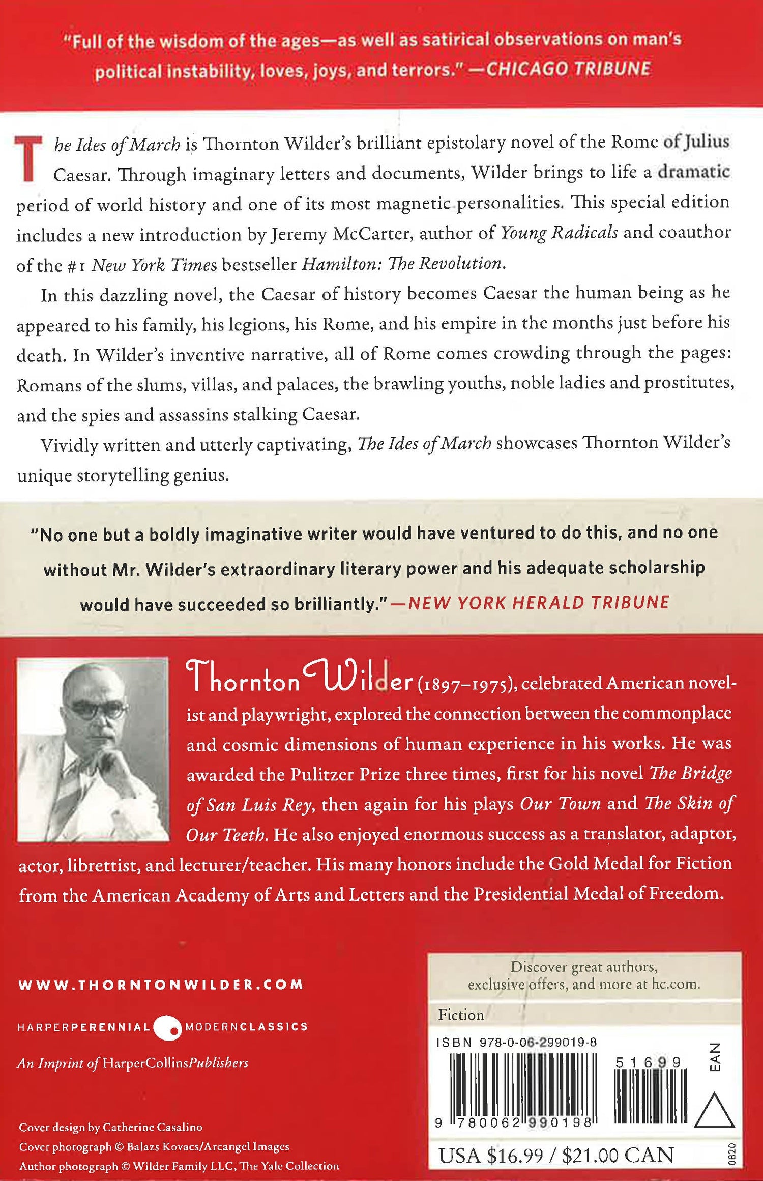 First published in 1948, The Ides of March is a brilliant epistolary novel of the Rome of Julius Caesar. Through imaginary letters and documents, Wilder brings to life a dramatic period of world history and one of its magnetic personalities.