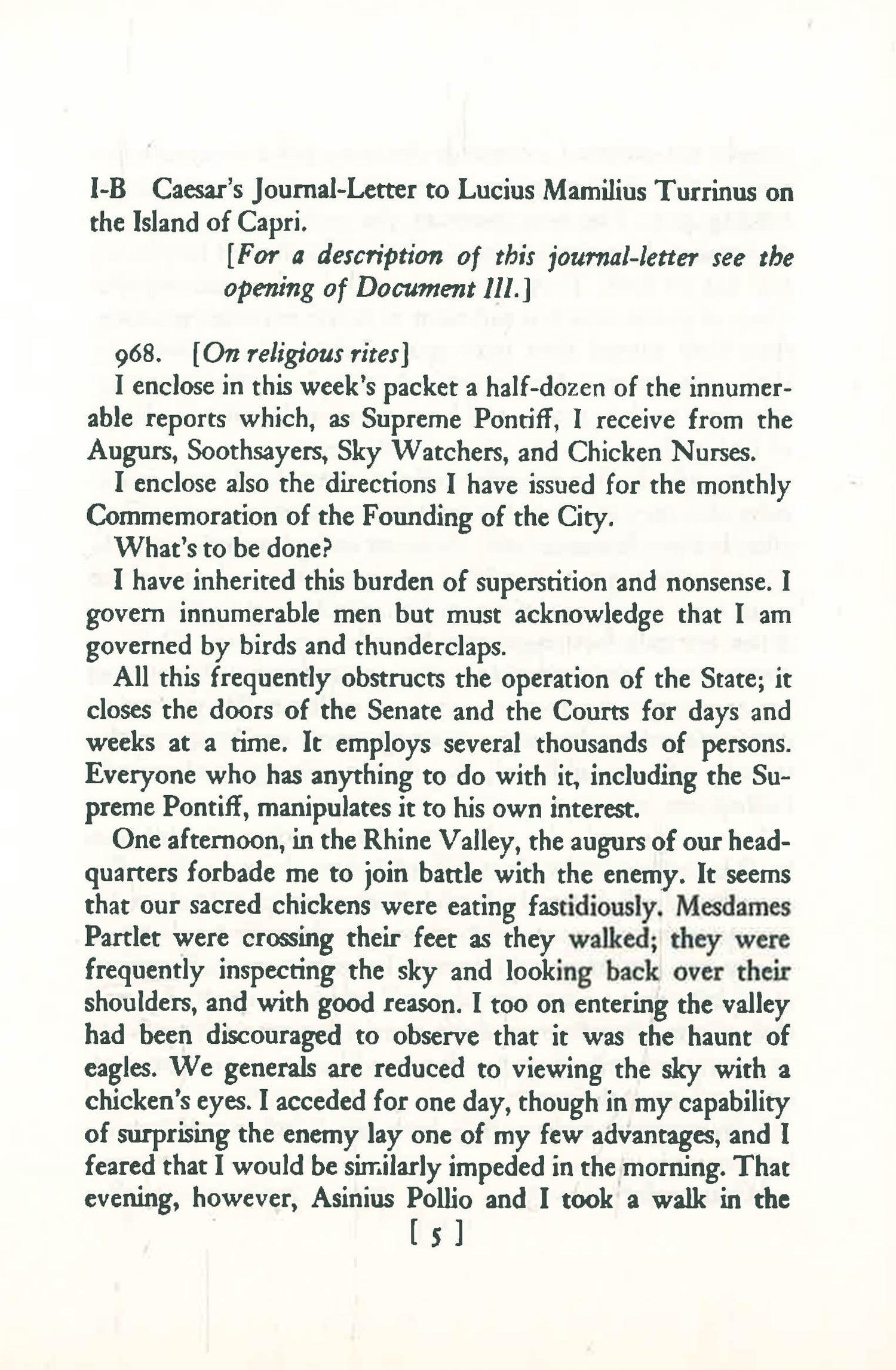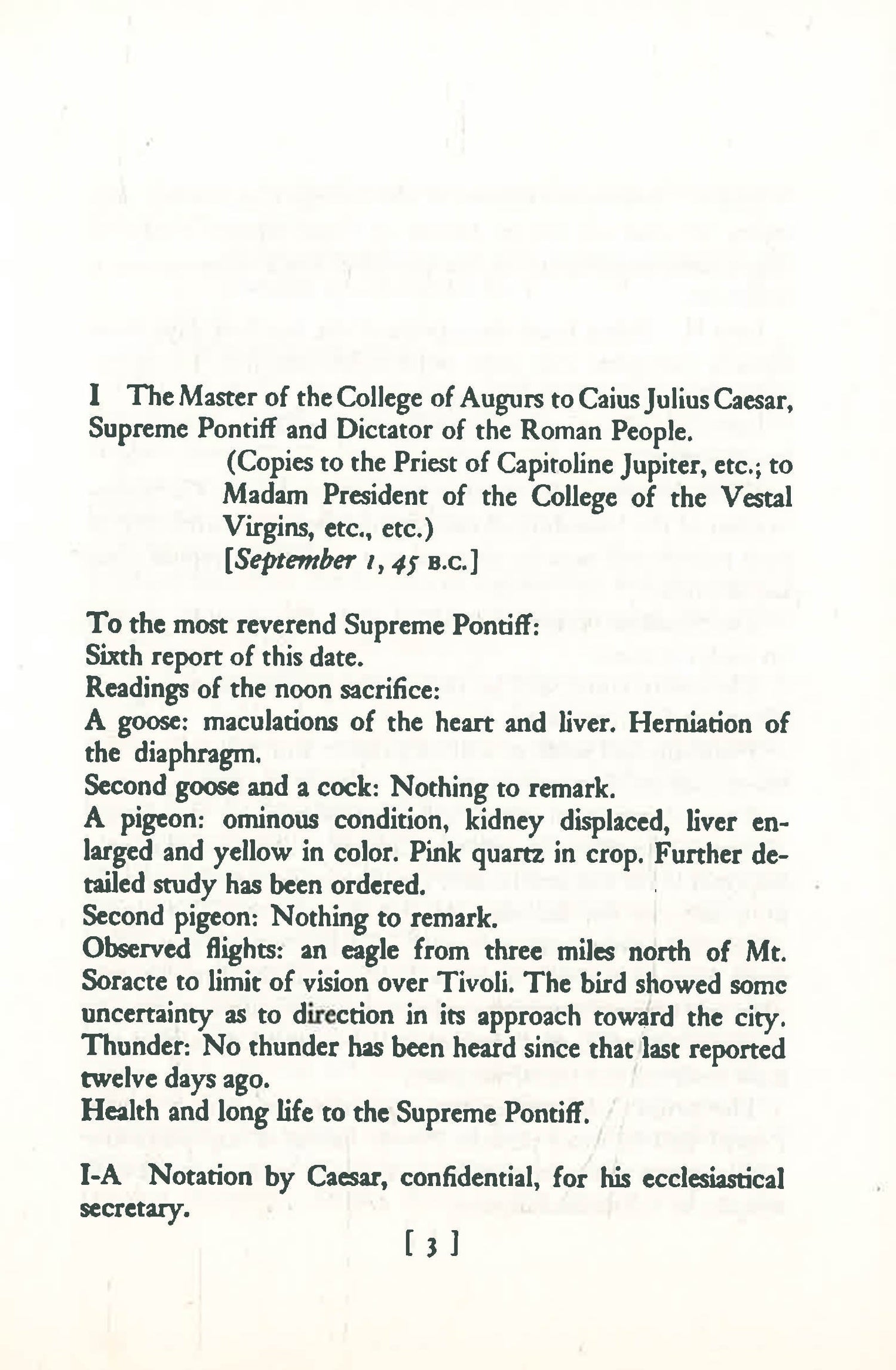 In this novel, the Caesar of history becomes Caesar the human being as he appeared to his family, his legions, his Rome, and his empire in the months just before his death. In Wilder’s inventive narrative, all Rome comes crowding through his pages: Romans of the slums, of the villas, of the palaces, brawling youths and noble ladies and prostitutes, and the spies and assassins stalking Caesar in his Rome.