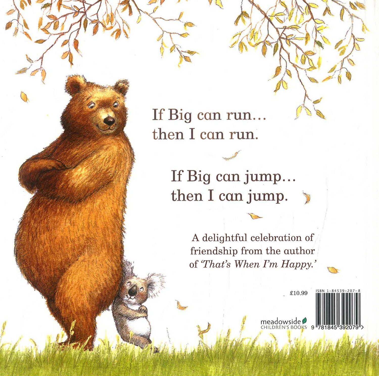 If Big can run, then I can run. If Big can jump, then I can jump. This is a celebration of friendship and friendly rivalry, from the author of "That's When I'm Happy", with illustrations from Petra Brown.