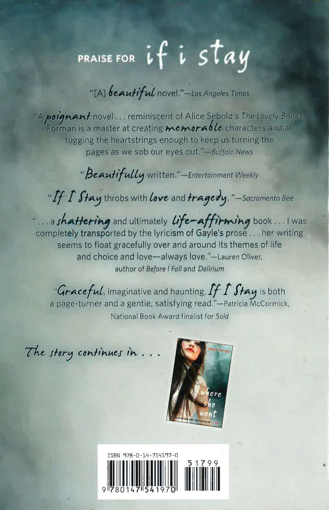 While in a coma following an automobile accident that killed her parents and younger brother, seventeen-year-old Mia, a gifted cellist, weighs whether to live with her grief or join her family in death.
