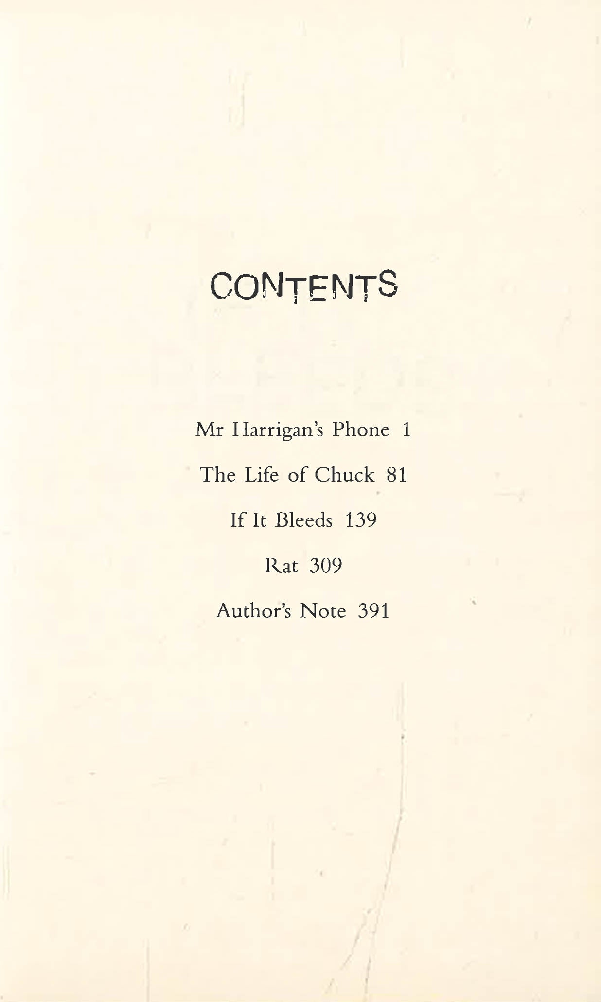 Dancing alongside are three more wonderful long stories from this 'formidably versatile author' (The Sunday Times) - 'Mr Harrigan's Phone', 'The Life of Chuck' and 'Rat'. All four display the richness of King's storytelling with grace, humour, horror and breathtaking suspense. A fascinating Author's Note gives us a wonderful insight into the origin of each story and the writer's unparalleled imagination.