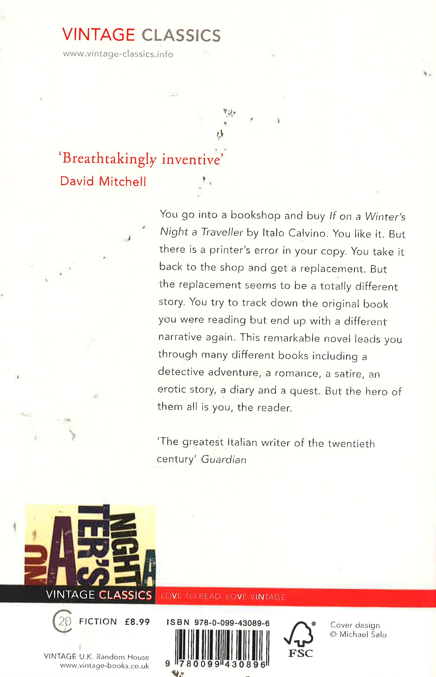 You go into a bookshop and buy If on a Winter's Night a Traveller by Italo Calvino. You like it. But alas there is a printer's error in your copy. You take it back to the shop and get a replacement. But the replacement seems to be a totally different story. You try to track down the original book you were reading but end up with a different narrative again. This remarkable novel leads you through many different books including a detective adventure, a romance, a satire, an erotic story, a diary and a quest. But the real hero is you, the reader.