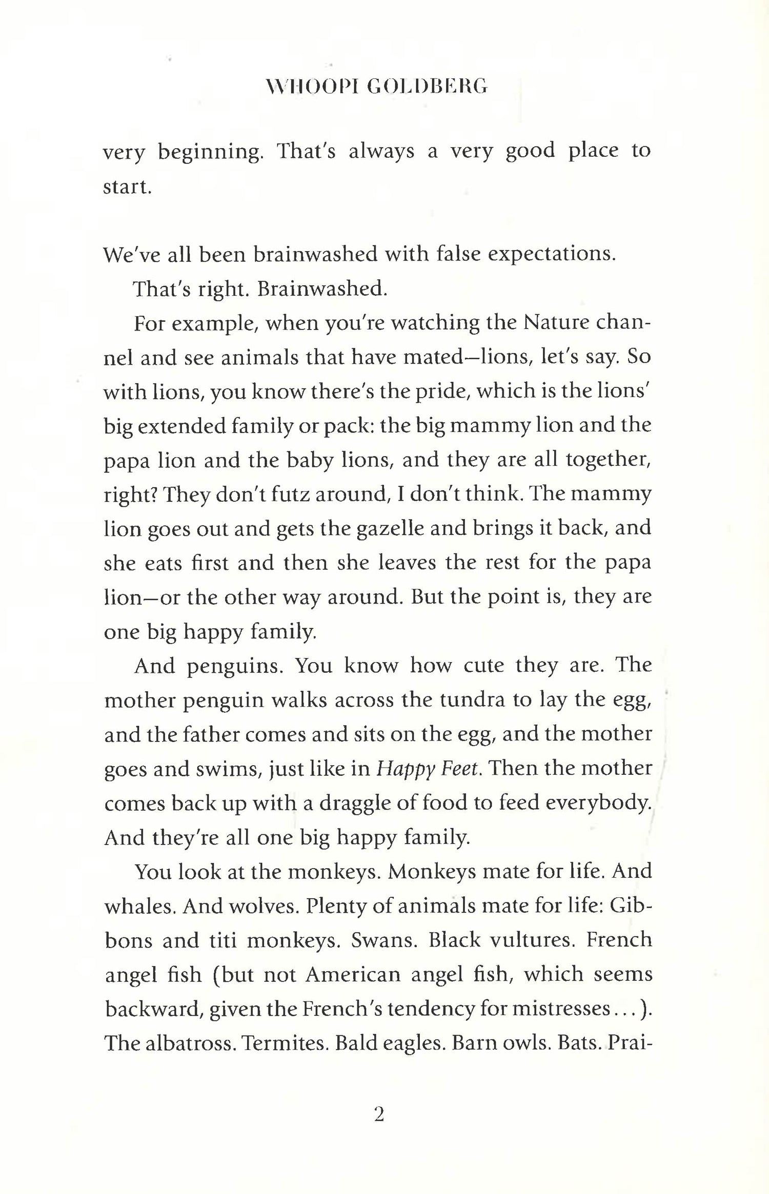 Whoopi Goldberg has been an electrifying, envelope-pushing public figure of many stripes: acclaimed actor, comedienne, singer, songwriter, author, political activist and talk show host. Now, Whoopi will speak openly about why marriage isn't for everyone, how being alone can be satisfying, and how what's most important is understanding who you are and what makes you happy. Wise, funny, and conversation-starting, Whoopi's message is sure to resonate with the millions of people who struggle with relationships every day.