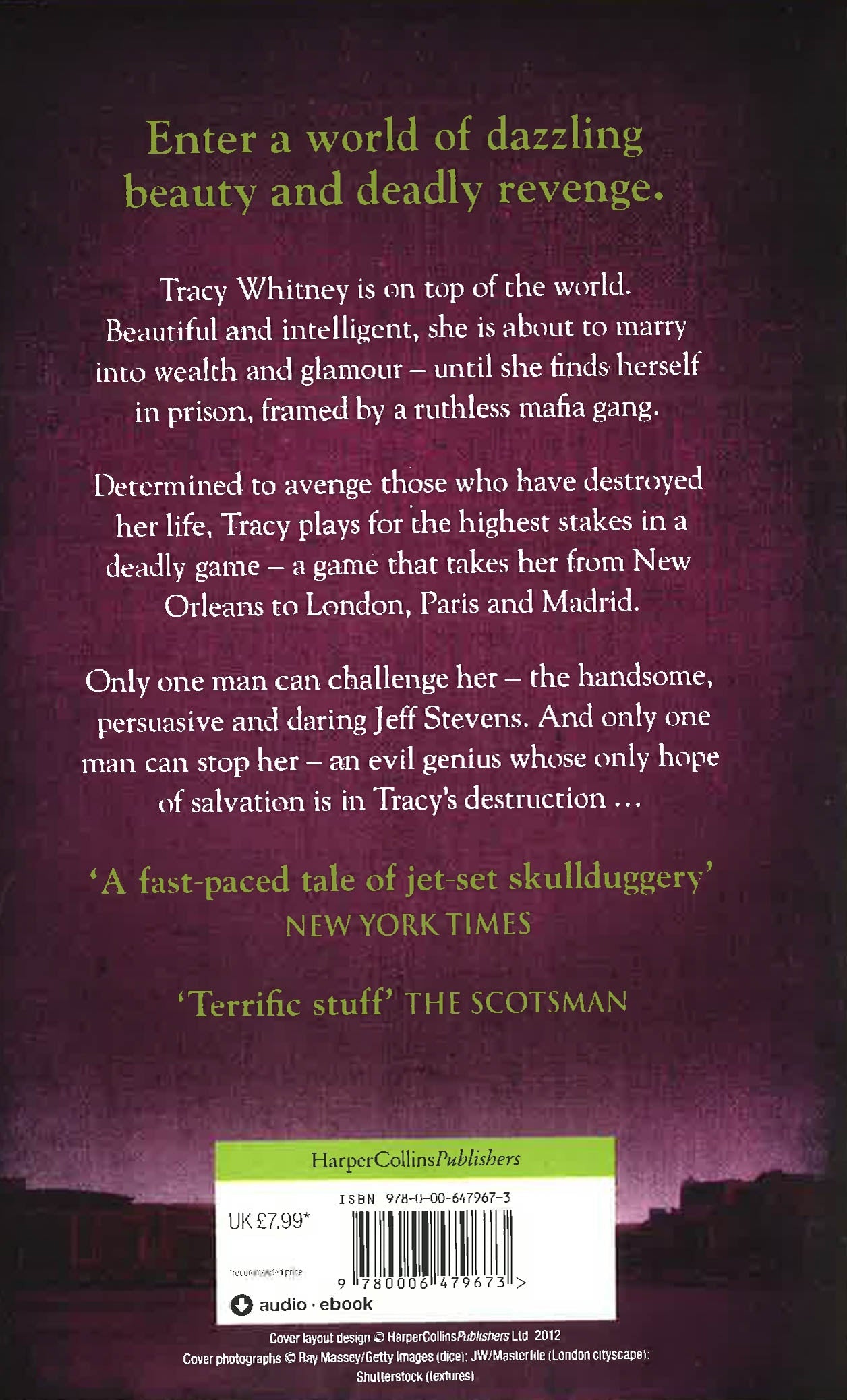 Tracy Whitey is on top of the world. Young, beautiful, intelligent, she is about to marry into wealth and glamour - until, betrayed by her own innocence, she finds herself in prison, framed by a ruthless mafia gang and abandoned by the man she loves. Beaten and broken, but surviving with her dazzling ingenuity, Tracy emerges from her savage ordeal - determined to avenge those who have destroyed her life. Her thirst for revenge takes her from New Orleans to London, from Paris to Madrid and Amsterdam. Tracy is playing for the highest stakes in a deadly game. Only one man can challenge her - he's handsome, persuasive and every bit as daring. Only one man can stop her - an evil genius whose only hope of salvation is in Tracy's destruction...
