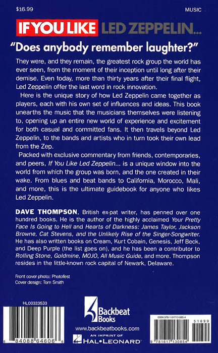 (If You Like). It was, and it remains, the greatest rock band the world has ever seen, a giant from the moment of its inception until long after its demise. Even today, more than 30 years after its final flight, Led Zeppelin offers the final word in rock innovation the one band that so many try to emulate and so few come even close to catching. If You Like Led Zeppelin... is the unique story of how Led Zeppelin came together not just as players, but as influences and ideas. It unearths the music that the musicians themselves were listening to, to open up an entire new world of experience and excitement for both casual and committed fans. It then travels beyond Led Zeppelin, to the bands and artists who in turn took their own lead from the Zep. Packed with exclusive comments from friends, contemporaries, and peers, If You Like Led Zeppelin... is a unique window into the world from which Led Zeppelin was born, and the one it created in its wake. From blues and beat bands to California, Morocco, Mali, and beyond, this is the ultimate guidebook for anyone who likes Led Zeppelin.