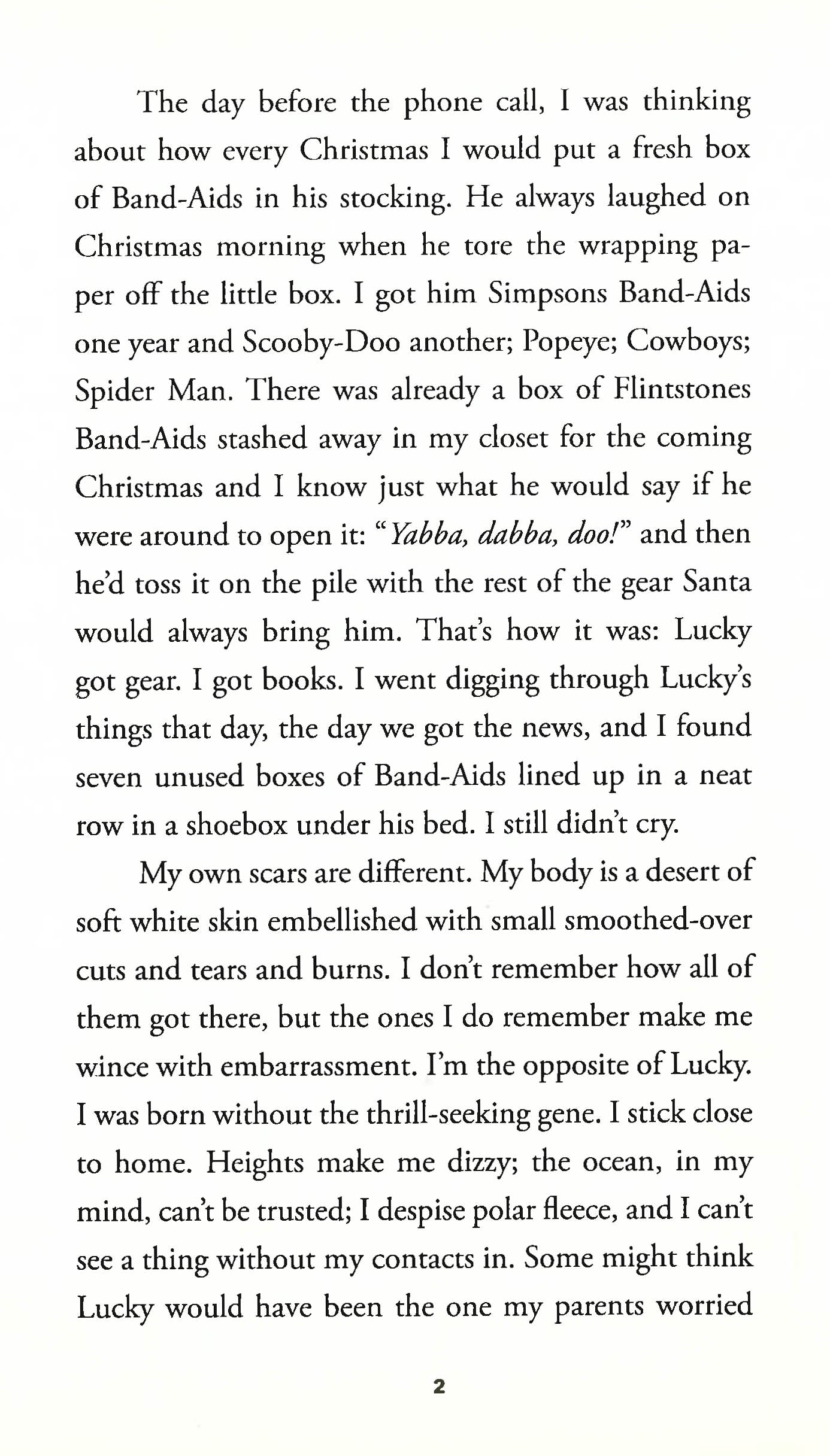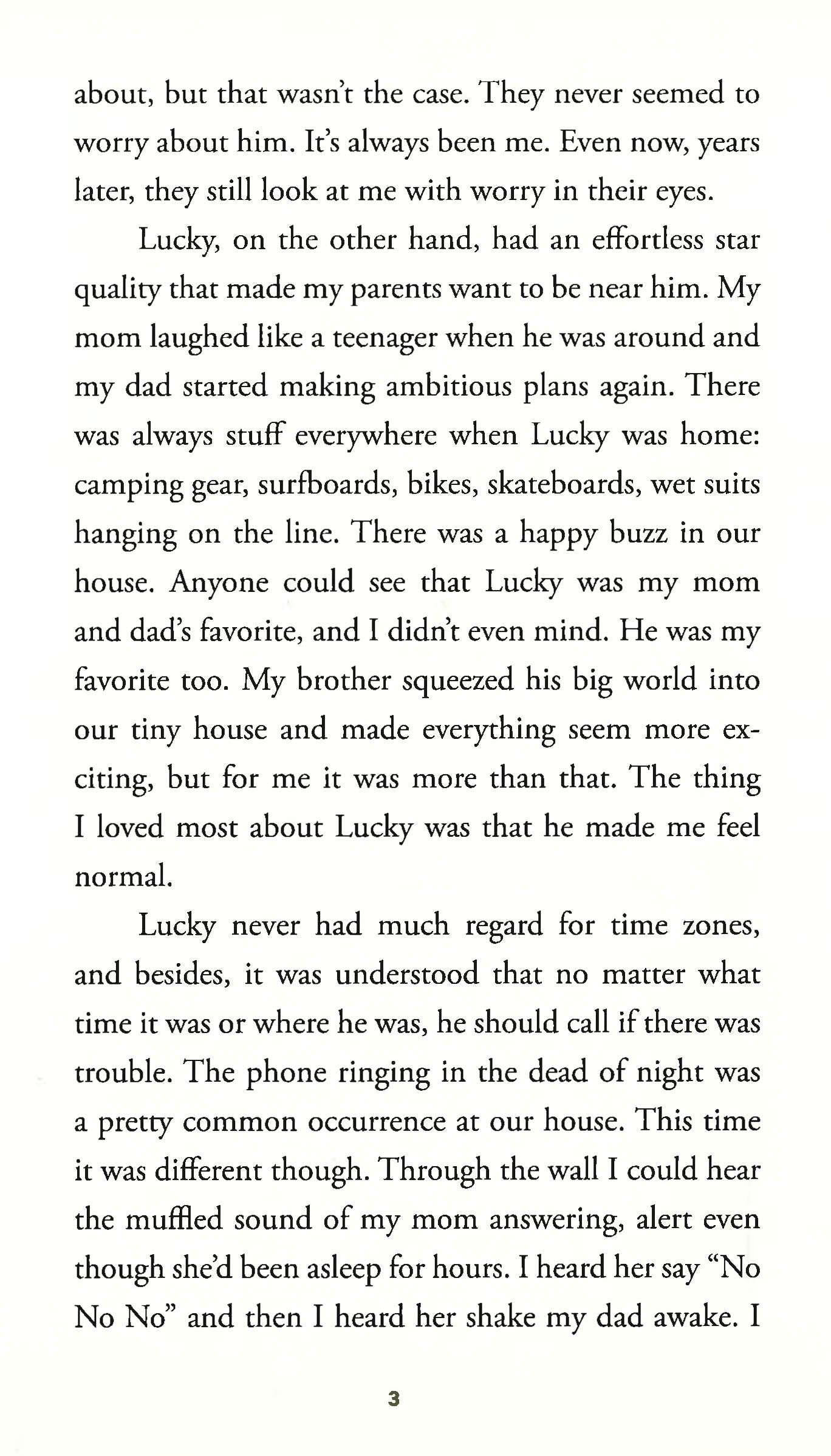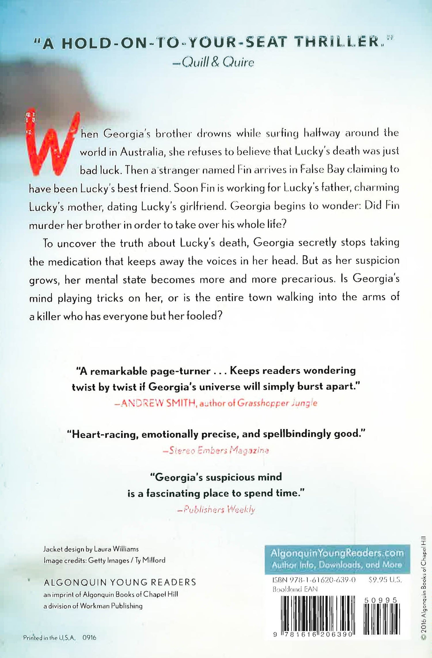 When Georgia's brother drowns while surfing halfway around the world in Australia, she refuses to believe that Lucky's death was just bad luck. Then a stranger named Fin arrives in False Bay claiming to have been Lucky's best friend. Soon Fin is working for Lucky's father, charming Lucky's mother, dating Lucky's girlfriend. Georgia begins to wonder: Did Fin murder her brother in order to take over his whole life? To uncover the truth about Lucky's death, Georgia secretly stops taking the medication that keeps away the voices in her head. But as her suspicion grows, her mental state becomes more and more precarious. Is Georgia's mind playing tricks on her, or is the entire town walking into the arms of a killer who has everyone but her fooled?