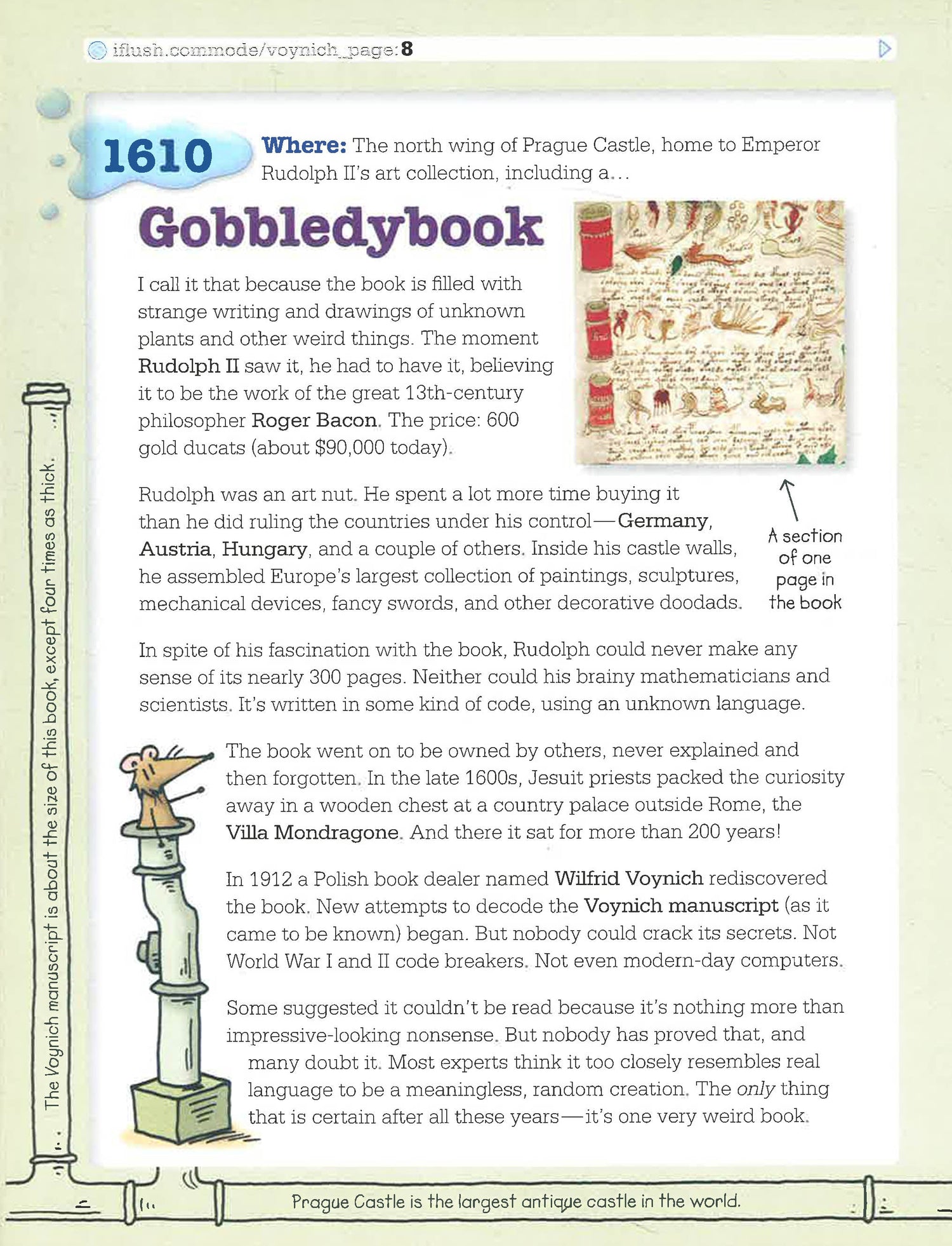 * Once a puzzle is solved, Dwayne, our ratty host, flushes himself through the Interpipe to plunge readers into their next history-mystery.