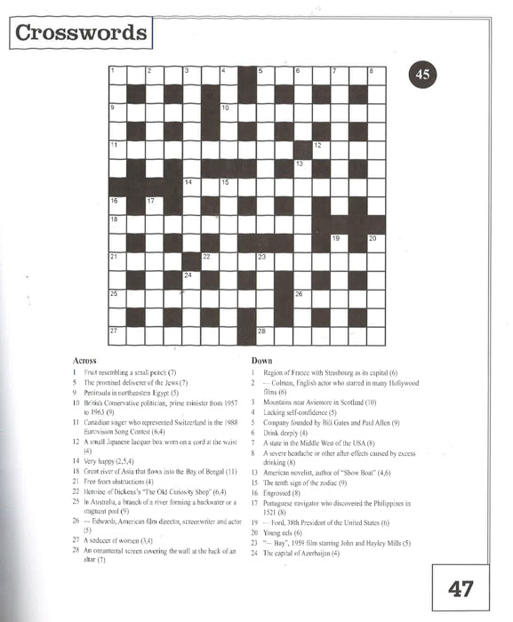 Tackle brain-bending puzzles in this ultimate book of crosswords, packed with hundreds of tricky challenges! Enjoy hours of entertainment as you grapple with clues and put your general knowledge through its paces. Perfect for all crossword fans!