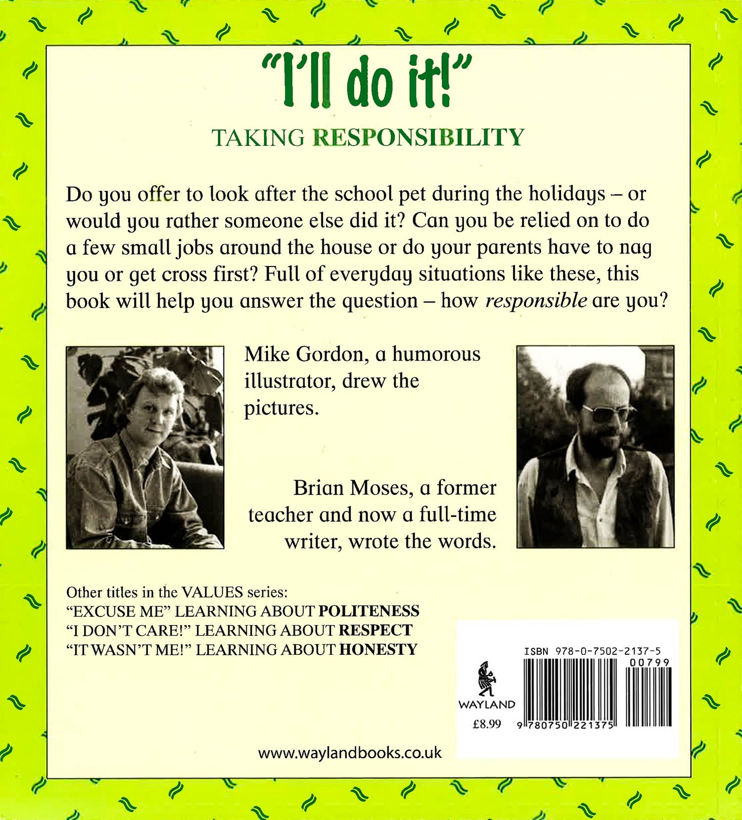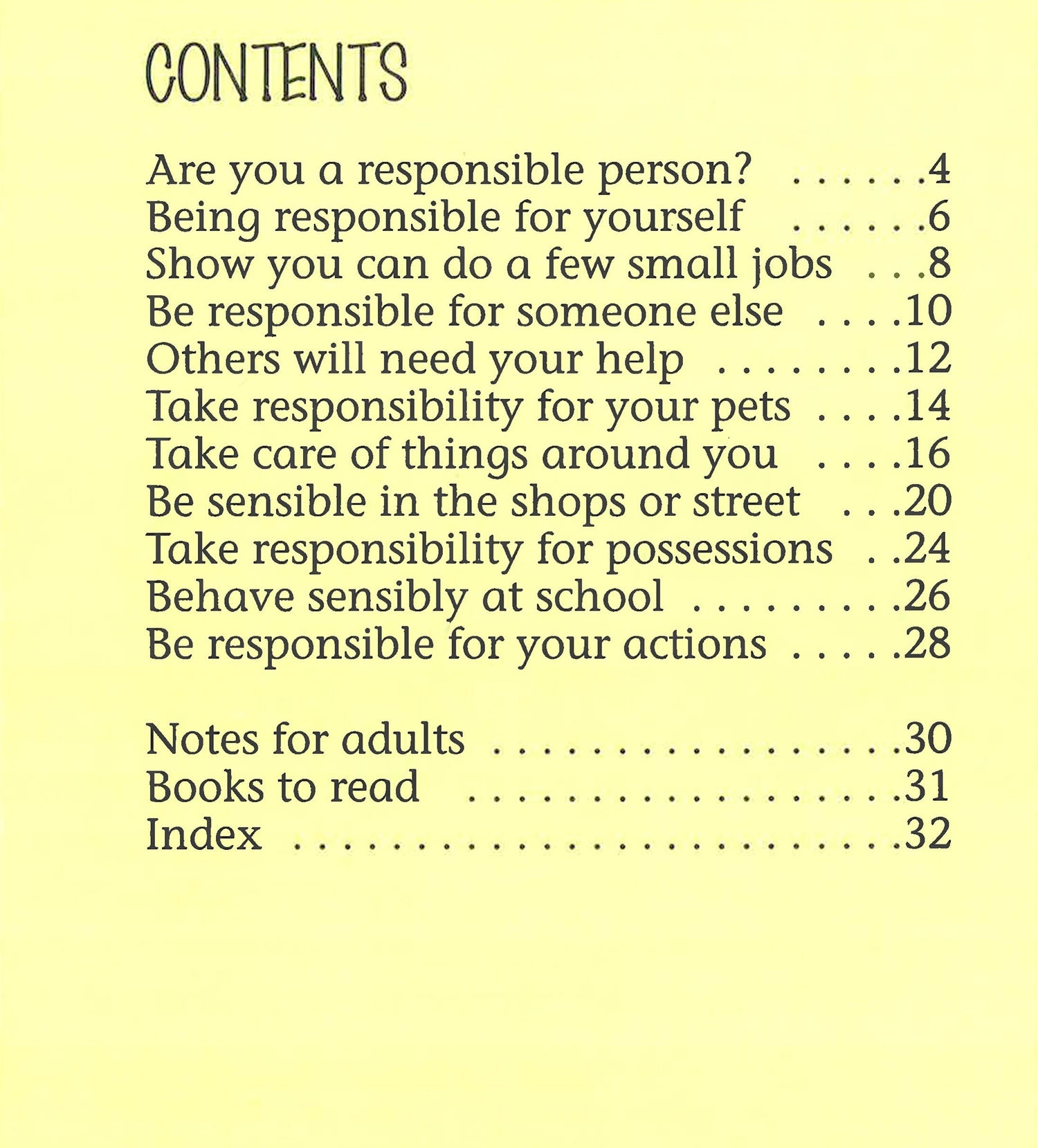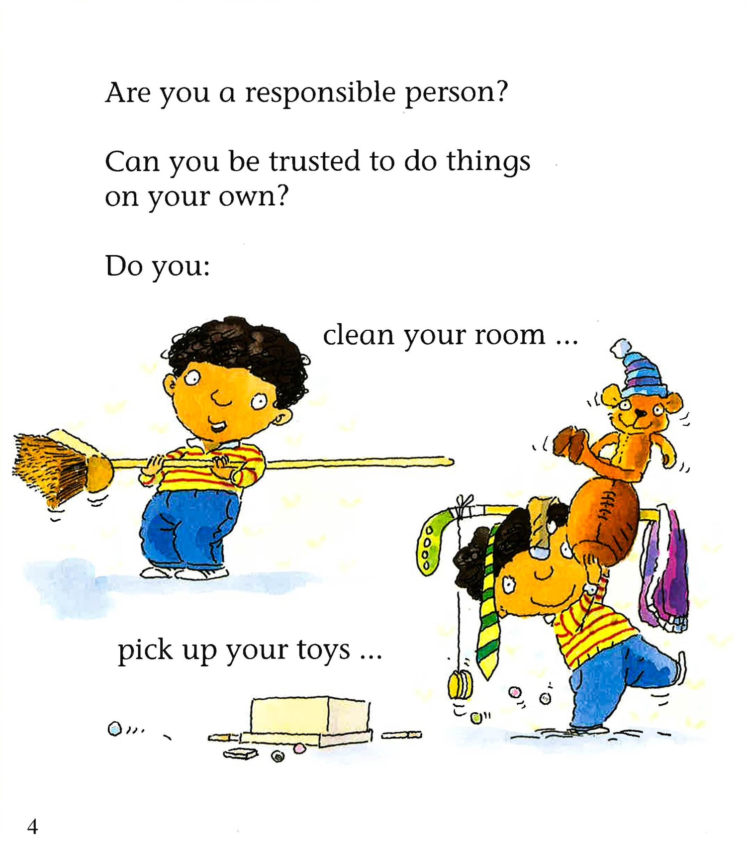 This classic picture book explains to young children why it's good to be a responsible person. From keeping their room tidy, making their own bed to looking after younger siblings and pets and taking care of their possessions, like their PE kit.