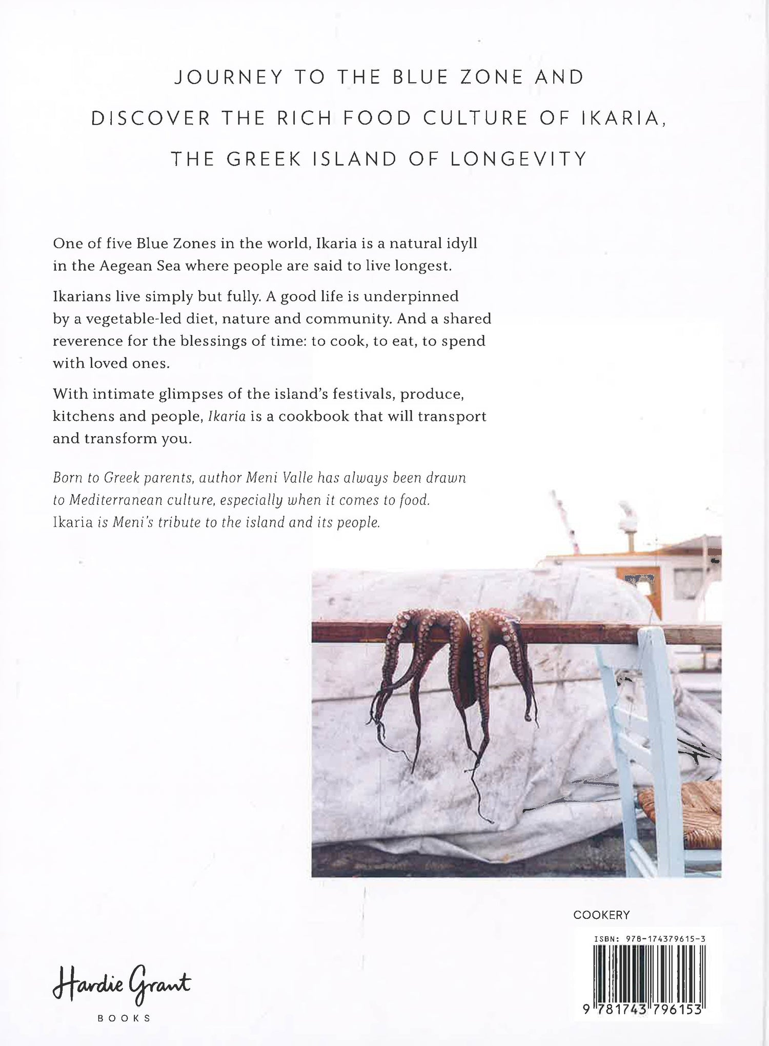 Ikaria is known worldwide for its incredibly high life expectancies and low rates of chronic disease, much of which can be attributed to diet. Born to Greek parents, Meni Valle has always been fascinated by her family's traditions of cooking and eating. In Ikaria, Meni collects traditional recipes from across the island that encapsulate the best of Mediterranean food: vegetables, beans, whole grains, small amounts of meat and fish, a couple of glasses of wine, and plenty of olive oil. But she also tells the stories that make up Ikaria, where life is all about taking time: time to cook, to eat, to nap, to spend with family and friends, to enjoy and to appreciate.