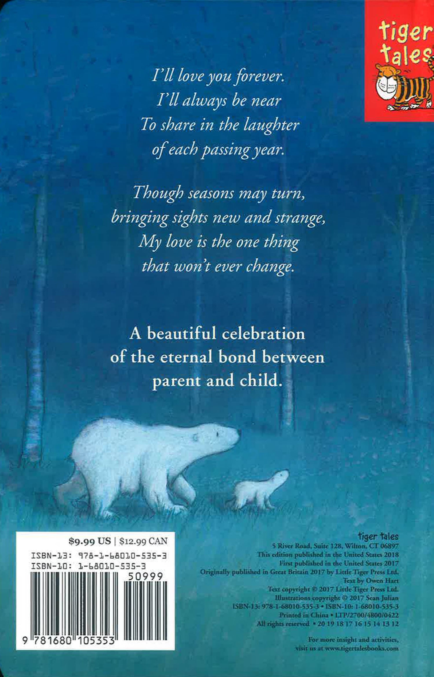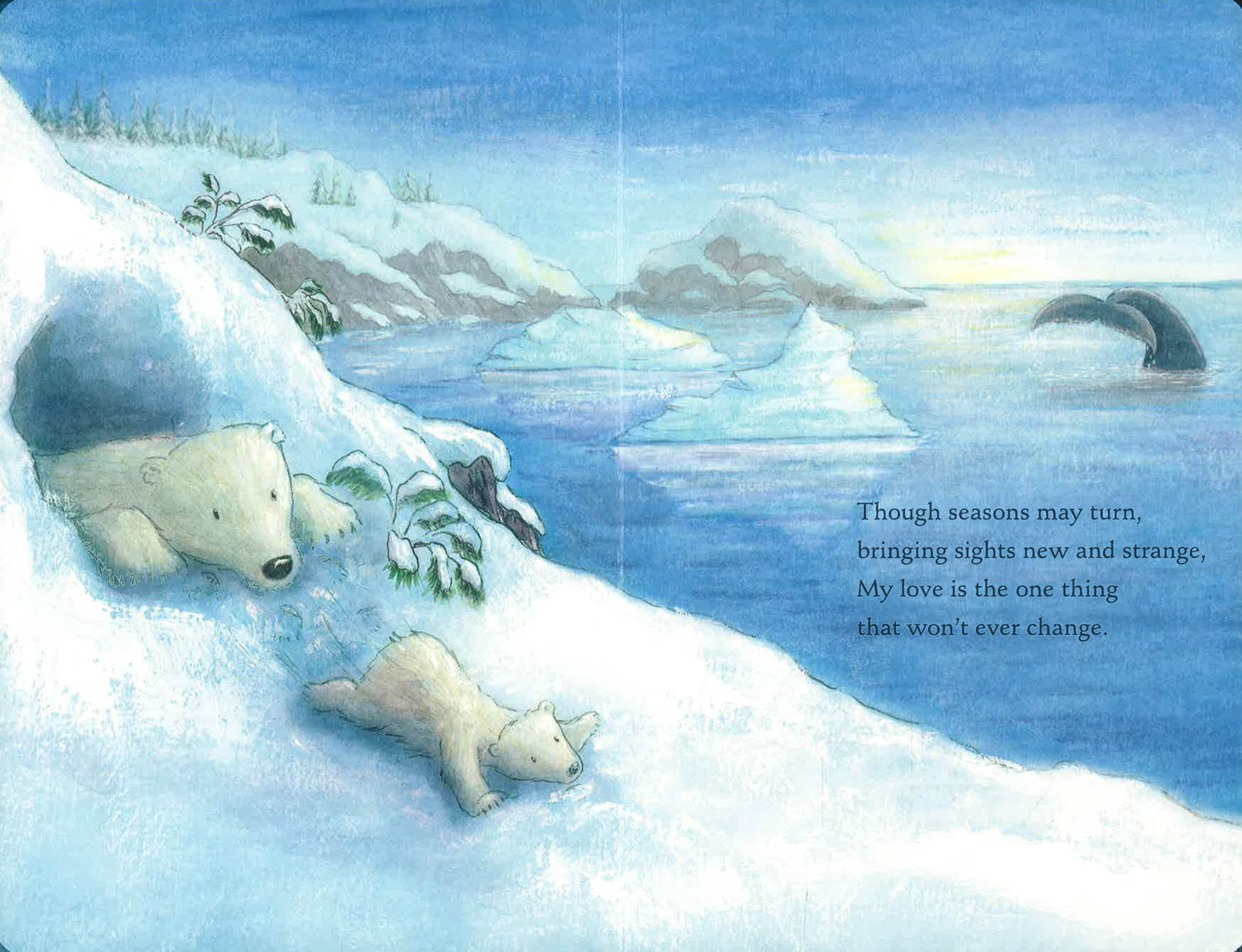 Polar Bear and Cub explore the beauty of their home in the Arctic as the seasons change. Throughout the journey, Polar Bear reassures Cub that no matter what changes occur - the loving bond between them will never be broken.