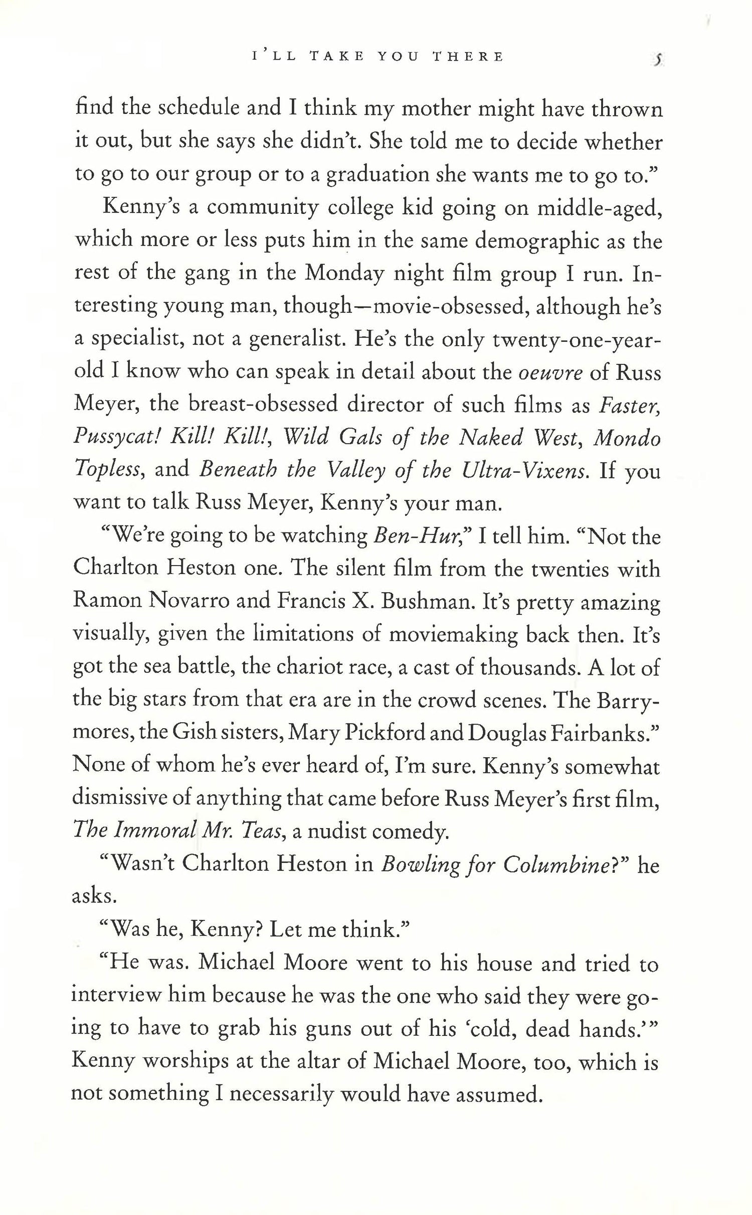 In this radiant homage to the resiliency, strength, and power of women, Wally Lamb weaves an evocative, deeply affecting tapestry of one Baby Boomer's life and the trio of unforgettable women who have changed it.I’ll Take You There centers on Felix, a film scholar who runs a Monday night movie club in what was once a vaudeville theater. One evening, while setting up a film in the projectionist booth, he’s confronted by the ghost of Lois Weber, a trailblazing motion picture director from Hollywood’s silent film era. Lois invites Felix to revisit - and in some cases relive - scenes from his past as they are projected onto the cinema’s big screen.In these magical movies, the medium of film becomes the lens for Felix to reflect on the women who profoundly impacted his life. There’s his daughter Aliza, a Gen Y writer for New York Magazine who is trying to align her post-modern feminist beliefs with her lofty career ambitions; his sister, Frances, with whom he once shared a complicated bond of kindness and cruelty; and Verna, a fiery would-be contender for the 1951 Miss Rheingold competition, a beauty contest sponsored by a Brooklyn-based beer manufacturer that became a marketing phenomenon for two decades. At first unnerved by these ethereal apparitions, Felix comes to look forward to his encounters with Lois, who is later joined by the spirits of other celluloid muses.Against the backdrop of a kaleidoscopic convergence of politics and pop culture, family secrets, and Hollywood iconography, Felix gains an enlightened understanding of the pressures and trials of the women closest to him, and of the feminine ideals and feminist realities that all women, of every era, must face.