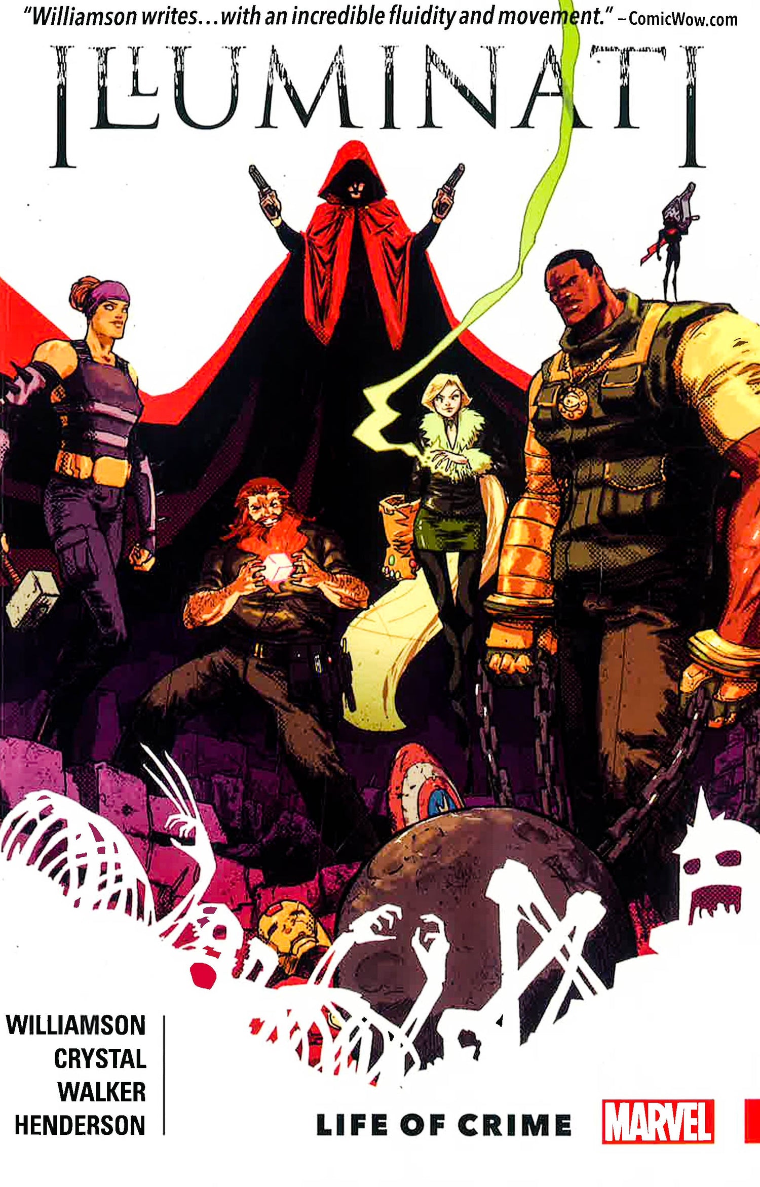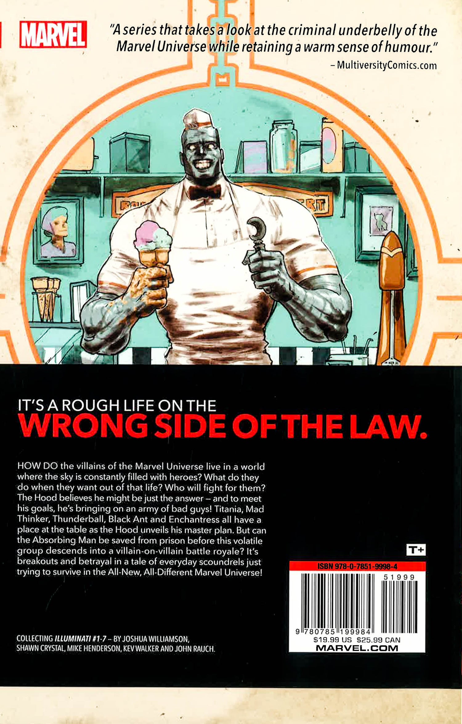 "Bad guys win every day...why not us?" How do the villains of the Marvel Universe live in a world where the sky isconstantly filled with heroes? What do they do when they want out of that life? Who will fight for them? The Hoodbelieves he might just be the answer, and to meet his goals he's bringing on an army of bad guys! Titania, Mad Thinker, Thunderball, Black Ant and Enchantress will all have a place at the table as the Hood unveils his master plan.
