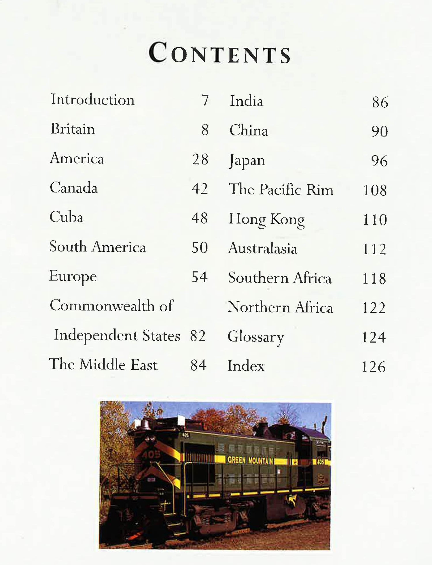 Includes trains from every continent of the world, including the Far East, Africa, Australasia, the Americas and Europe.