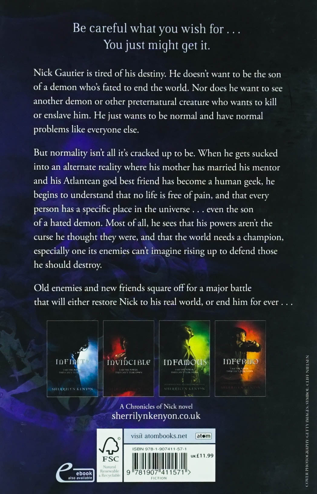 Be careful what you wish for...You just might get it. Nick Gautier is tired of his destiny. He doesn't want to be the son of a demon who's fated to end the world. Nor does he want to see another demon or other preternatural creature who wants to kill or enslave him. He just wants to be normal and have normal problems like everyone else. But normality isn't all it's cracked up to be. When he gets sucked into an alternate reality where his mother has married his mentor and his Atlantean god best friend has become a human geek, he begins to understand that no life is free of pain, and that every person has a specific place in the universe...Even the son of a hated demon. Most of all, he sees that his powers aren't the curse he thought they were, and that the world needs a champion, especially one its enemies can't imagine rising up to defend the ones he should destroy. Old enemies and new friends square off for a major battle that will either restore Nick to his real world, or end him forever.