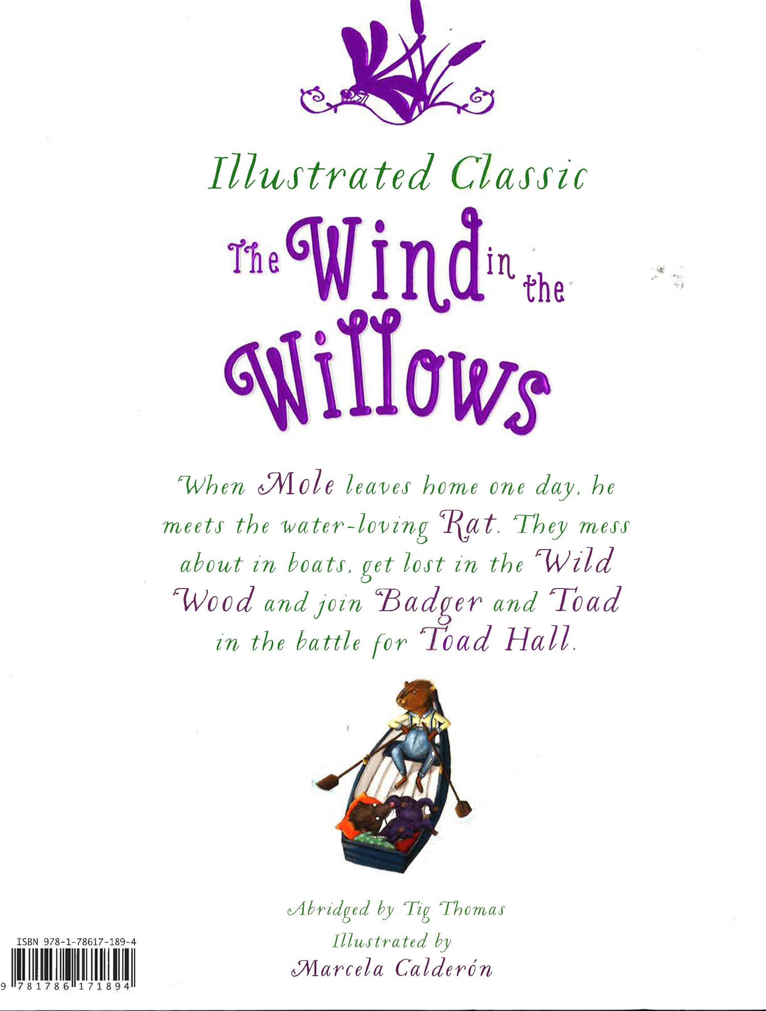 This carefully abridged edition follows the exciting adventures of water-loving Rat, sensitive Mole, fun-loving Toad and wise Badger as they mess about in boats, get lost in the Wild Wood and battle to take back Toad Hall. Favourite characters and scenes have been reimagined with plate illustrations, presented in a sumptuous hardback design.