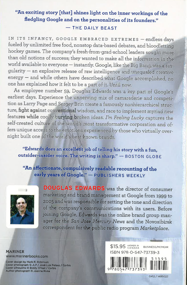 As employee number 59, Douglas Edwards was a key part of Google's earliest days. Experience the unnerving mix of camaraderie and competition as Larry Page and Sergey Brin create a famously nonhierarchical structure, fight against conventional wisdom, and race to implement myriad new features while coolly burying broken ideas. I'm Feeling Lucky captures the self-created culture of the world's most transformative corporation and offers unique access to the emotions experienced by those who virtually overnight built one of the world's best-known brands.