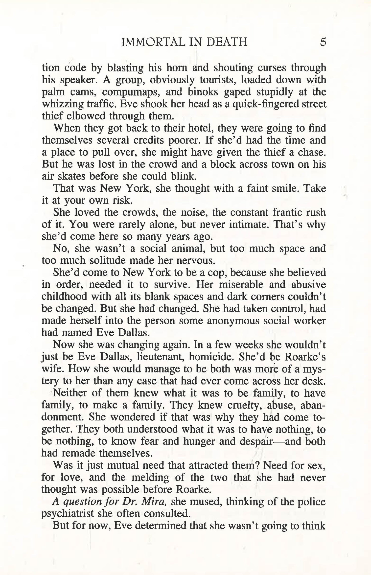 She was one of the most sought after women in the world. A top model who would stop at nothing to get what she wanted--even another woman's man. And now she was dead, the victim of a brutal murder. Police Lieutenant Eve Dallas put her life on the line to take the case when suspicion fell on her best friend, the other woman in the fatal love triangle. Beneath the façade of glamour, Eve found that the world of high fashion thrived on an all-consuming obsession for youth and fame. One that led from the runway to the dark underworld of New York City where drugs could be found to fulfill any desire--for a price...