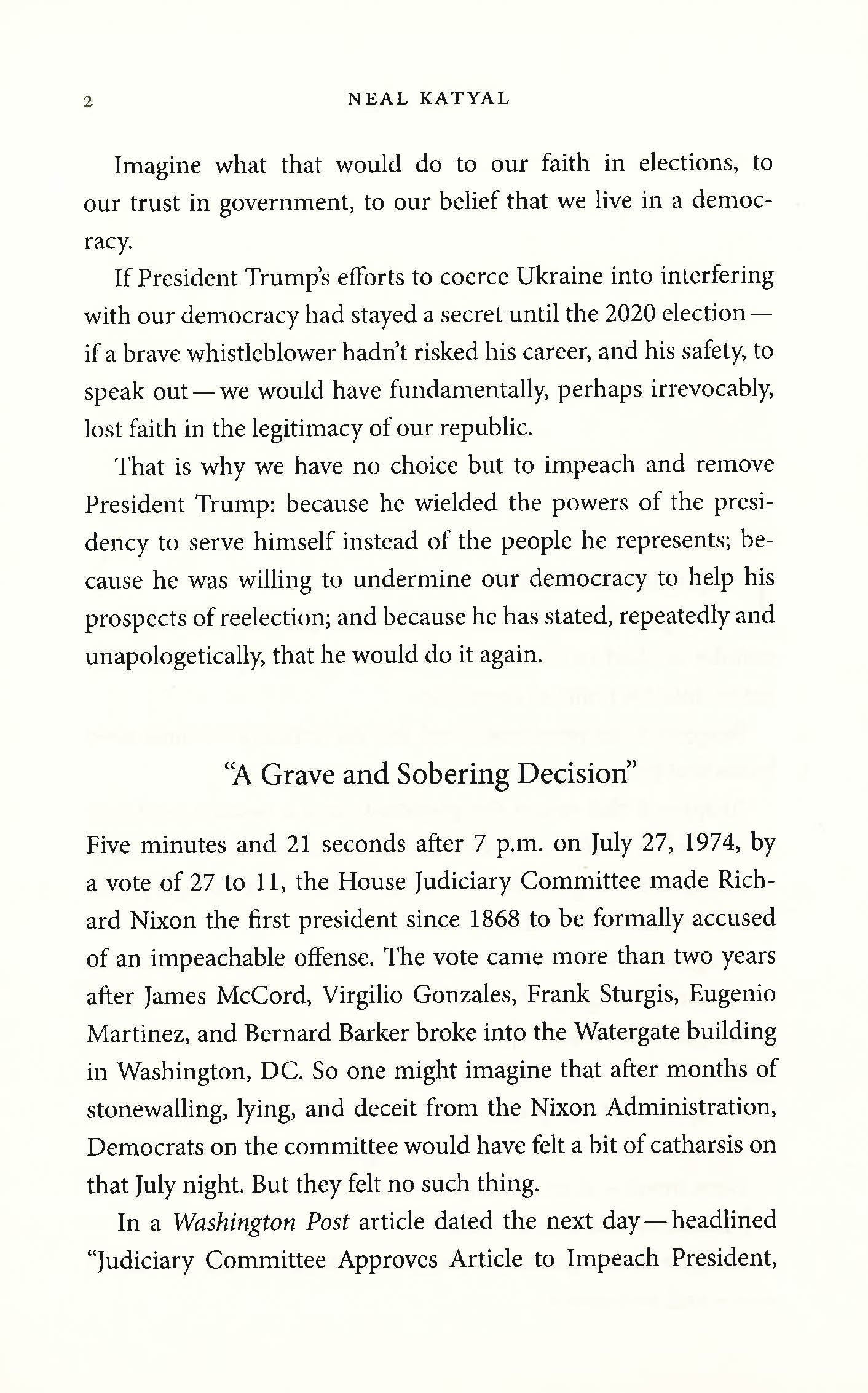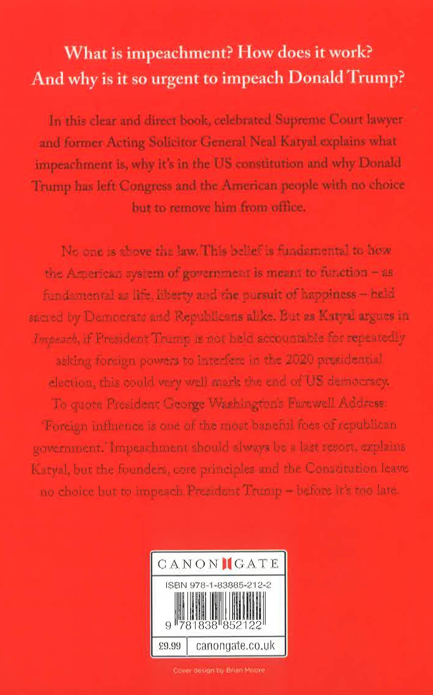 The New York Times bestsellerWhat is impeachment? How does it work? And why is it so urgent to impeach Donald Trump?No one is above the law. This belief is fundamental to how the American system of government is meant to function - as fundamental as life, liberty and the pursuit of happiness - held sacred by Democrats and Republicans alike. But as celebrated Supreme Court lawyer and former Acting Solicitor General Neal Katyal argues in Impeach, if President Trump is not held accountable for repeatedly asking foreign powers to interfere in the 2020 presidential election, this could very well mark the end of US democracy. Impeachment should always be a last resort, explains Katyal, but the founders, core principles, and the Constitution leave no choice but to impeach President Trump - before it's too late.This clear and direct book explains what impeachment is, why it's in the U.S. constitution and why Donald Trump has left Congress and the American people with no choice but to remove him from office.