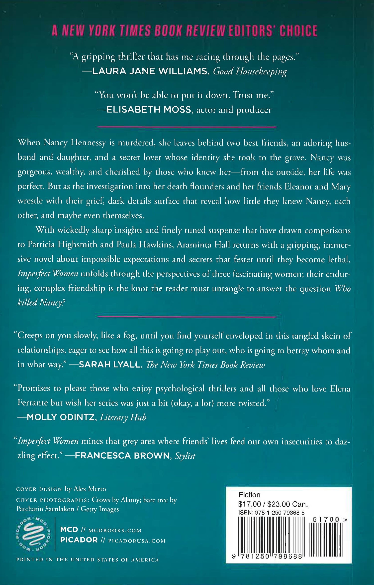 Imperfect Women explores guilt and retribution, love and betrayal, and the compromises we make that alter our lives irrevocably. With the wickedly sharp insights and finely tuned suspense that has drawn comparisons to Patricia Highsmith and Paula Hawkins, Araminta Hall returns with another page-turning, thought-provoking tour de force.