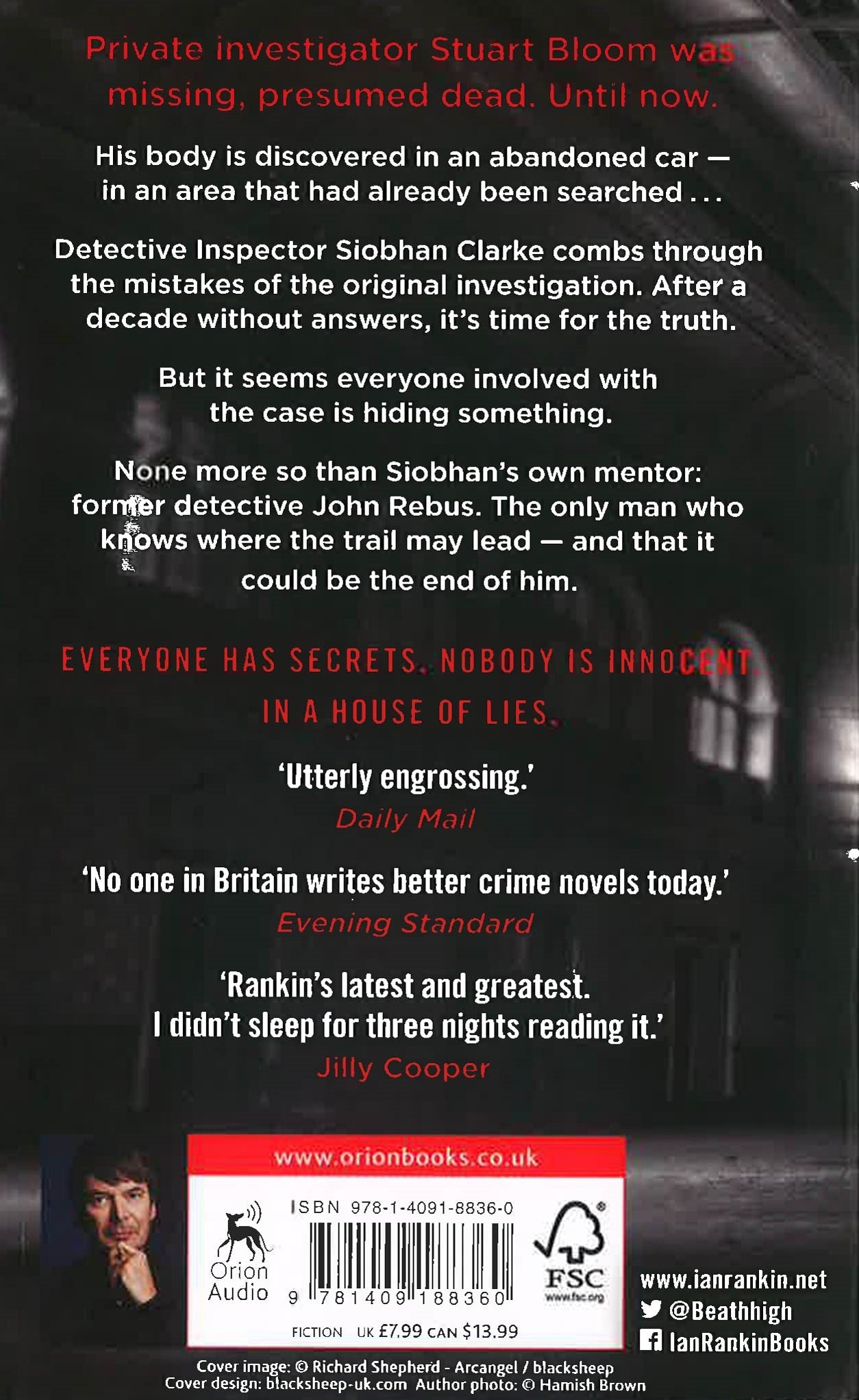 IN A HOUSE OF LIES...Everyone has something to hideA missing private investigator is found, locked in a car hidden deep in the woods. Worse still - both for his family and the police - is that his body was in an area that had already been searched.Everyone has secretsDetective Inspector Siobhan Clarke is part of a new inquiry, combing through the mistakes of the original case. There were always suspicions over how the investigation was handled and now - after a decade without answers - it's time for the truth.Nobody is innocentEvery officer involved must be questioned, and it seems everyone on the case has something to hide, and everything to lose. But there is one man who knows where the trail may lead - and that it could be the end of him: John Rebus.