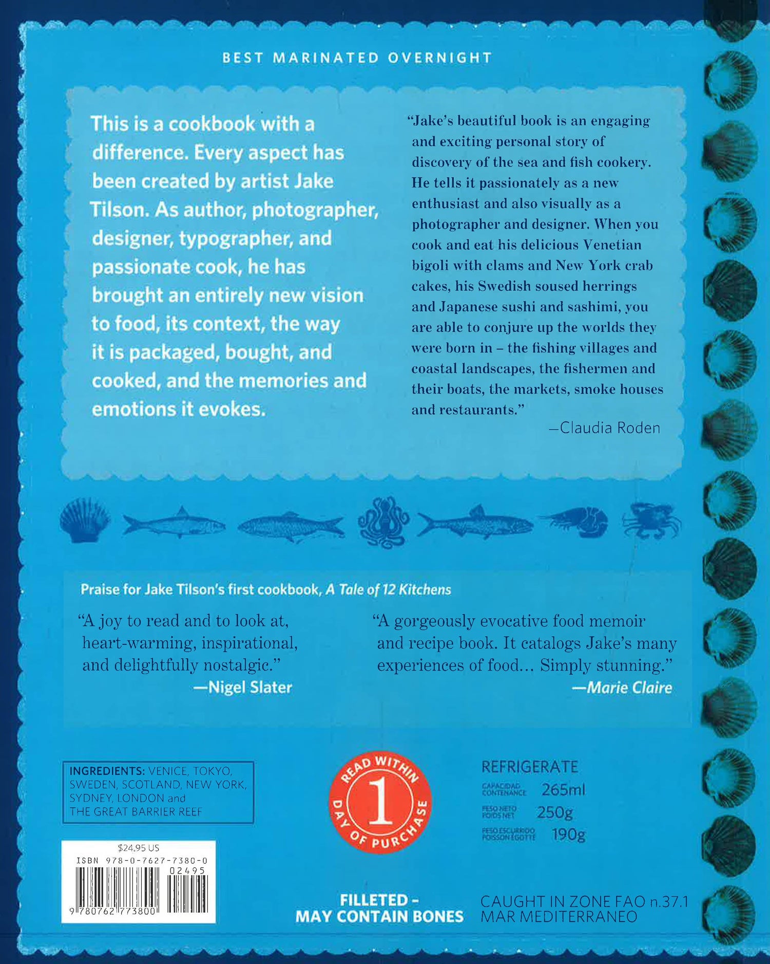 From Venice to London, New York to Sweden, and Aberdeen to Sydney, Jake chronicles his journey in exhilarating detail. Whether cooking and eating Venetian bigoli with clams or New York crab cakes, Swedish soused herrings or Japanese sushi and sashimi, he effortlessly conjures up the worlds these dishes were born in. An evocative, marvelously layered exploration of Jakes many experiences with fish, this unusual memoir/cookbook chronicles his progression from fish-phobic cook to seafood obsessive. It is to be read, savored, used and, above all, enjoyed.