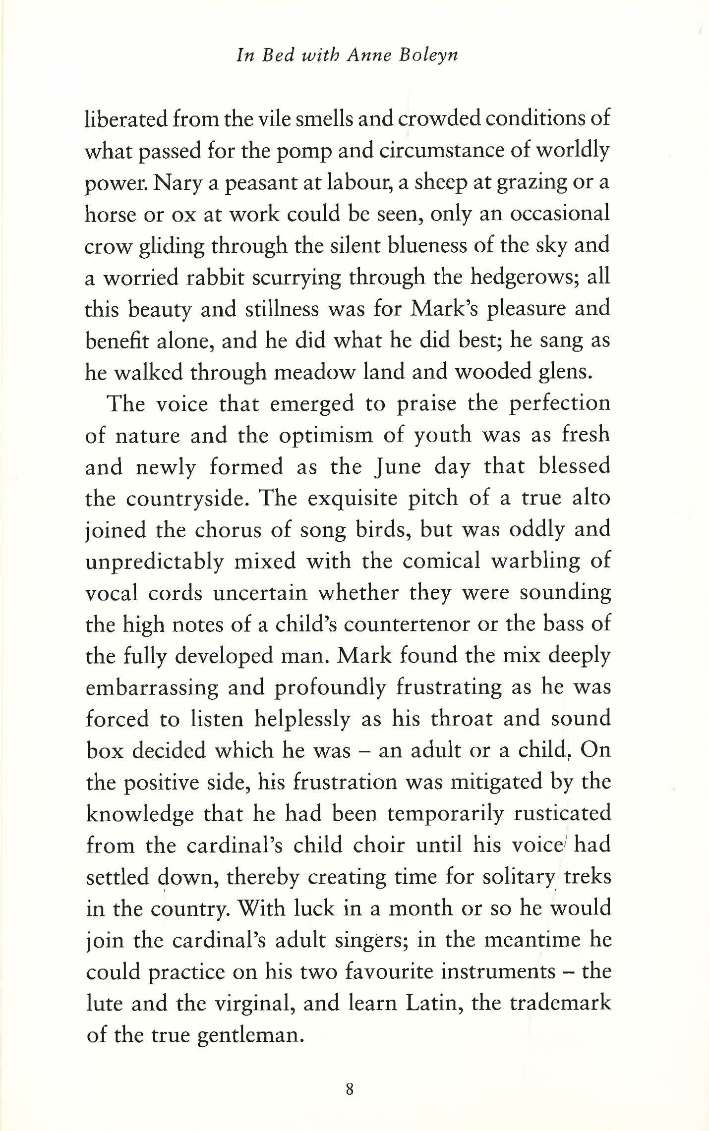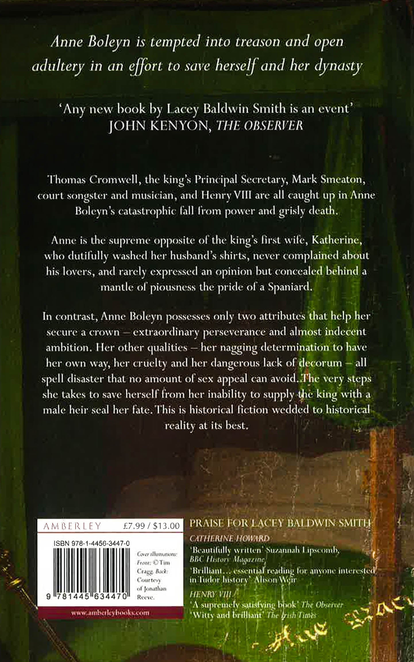 Thomas Cromwell, the king's Principal Secretary, Mark Smeaton, court songster and musician, and Henry VIII are all caught up in Anne Boleyn's catastrophic fall from power and grisly death. Anne is the supreme opposite of the king's first wife, Katherine, who dutifully washed her husband's shirts, never complained about his lovers, and rarely expressed an opinion but concealed behind a mantle of piousness the pride of a Spaniard. In contrast, Anne Boleyn possesses only two attributes that help her secure a crown - extraordinary perseverance and almost indecent ambition. Her other qualities - her nagging determination to have her own way, her cruelty and her dangerous lack of decorum - all spell disaster that no amount of sex appeal can avoid. The very steps she takes to save herself from her inability to supply the king with a male heir seal her fate. This is historical fiction wedded to historical reality at its best.