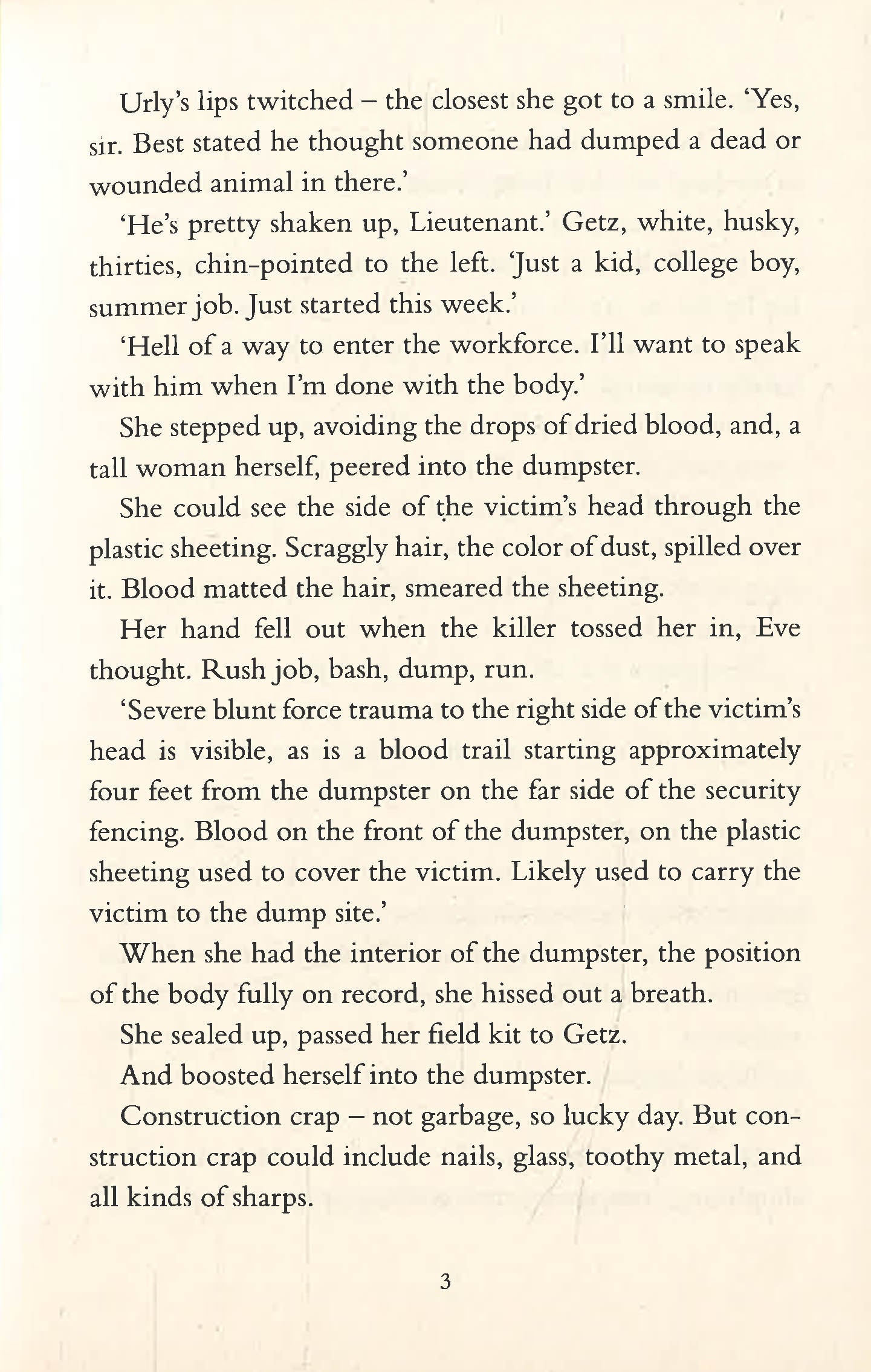 Eve has barely had time to examine the crime scene when her second victim of the morning is discovered just a block away. Make that second and third. Jane Doe - a well-dressed young mother and her baby shot and buried over 40 years ago.