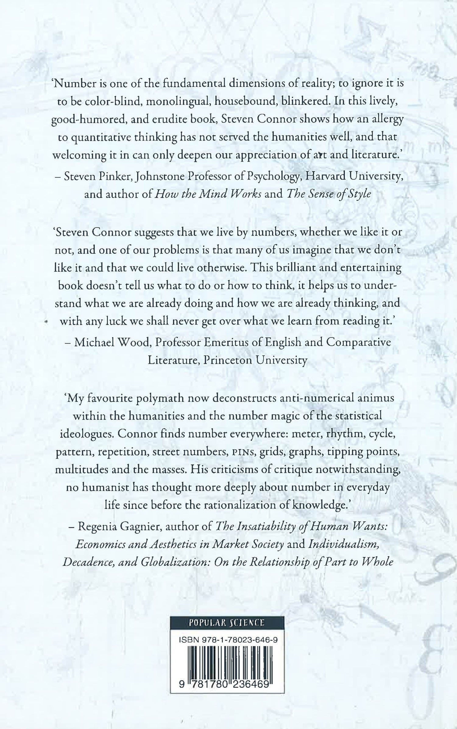 Ideas about numbers, magnitudes and frequencies shape and give texture to almost everything we feel, say, dream and do. In Living by Numbers, Steven Connor explores the many ways in which we live in, and by, a world of numbers.Connor homes in on the unsuspected weirdness of the number one, the links between horror, counting and the uncountable, and the close associations of numbers and death. He considers the way we make sense of crowds, swarms, masses and multitudes, and demonstrates the work of calculation that is always present in poems, jokes, laughter and pleasure. He shows how we use numbers to adjust ourselves to chance and uncertainty, examines the pressure of numbers in the experience of music, explains how they exert their force in painting, and reveals the many different ways in which numbers and quantities have taken visual form in diagrams, charts and infographics. Against the lazy and conventional assumption that human life needs to be defended against the alien and malign power of numbers, this book illustrates how essential the feeling for numbers is in all aspects of contemporary existence, arguing that no creativity or invention are in fact possible without numbers. Living by Numbers opens up for the first time the richness, variety and subtlety of how we do things with numbers and, just as importantly, how they do things with us.