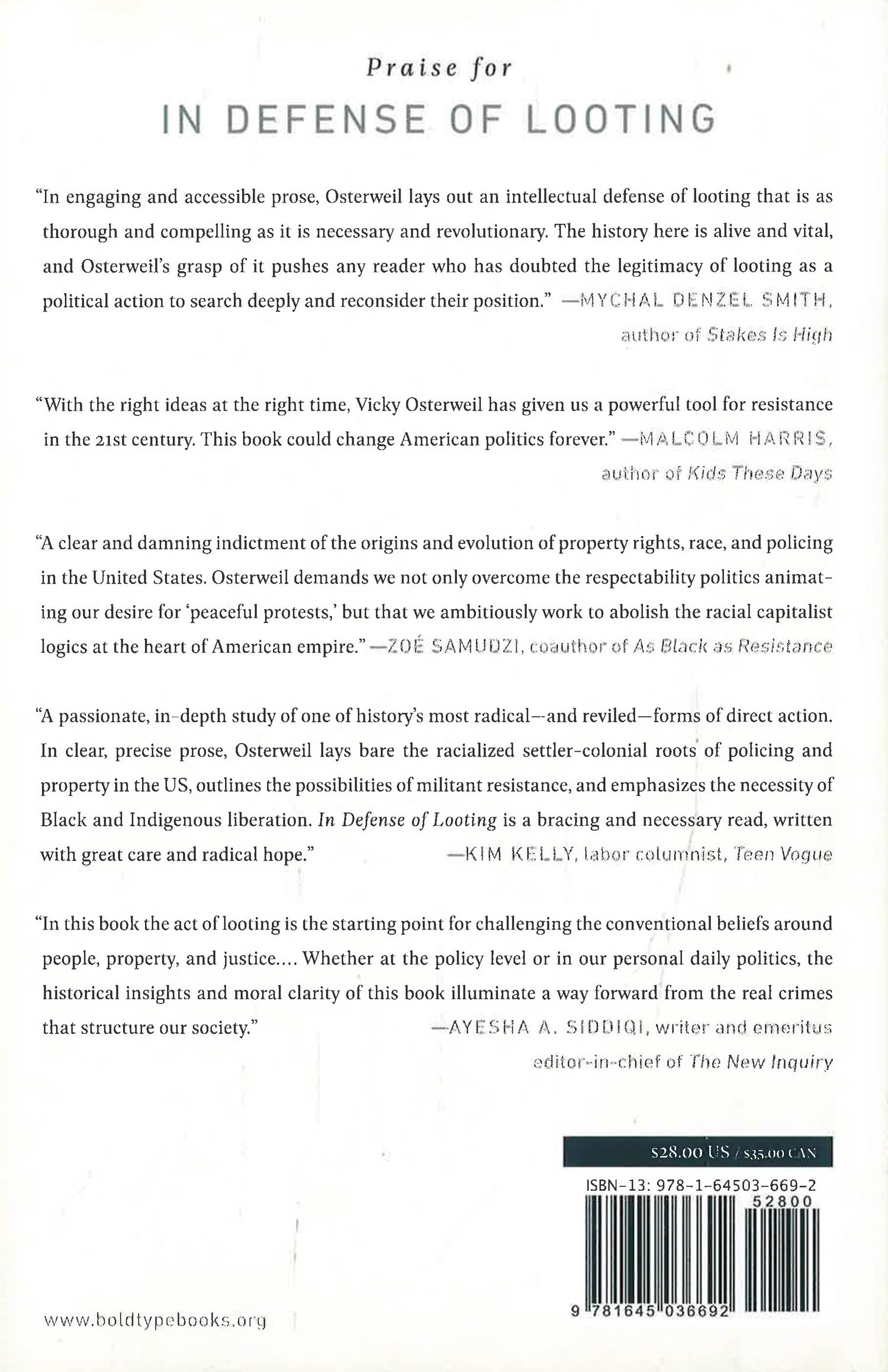 From slave revolts to labor strikes to the modern-day movements for climate change, Black lives, and police abolition, Osterweil makes a convincing case for rioting and looting as weapons that bludgeon the status quo while uplifting the poor and marginalized. In Defense of Looting is a history of violent protest sparking social change, a compelling reframing of revolutionary activism, and a practical vision for a dramatically restructured society.