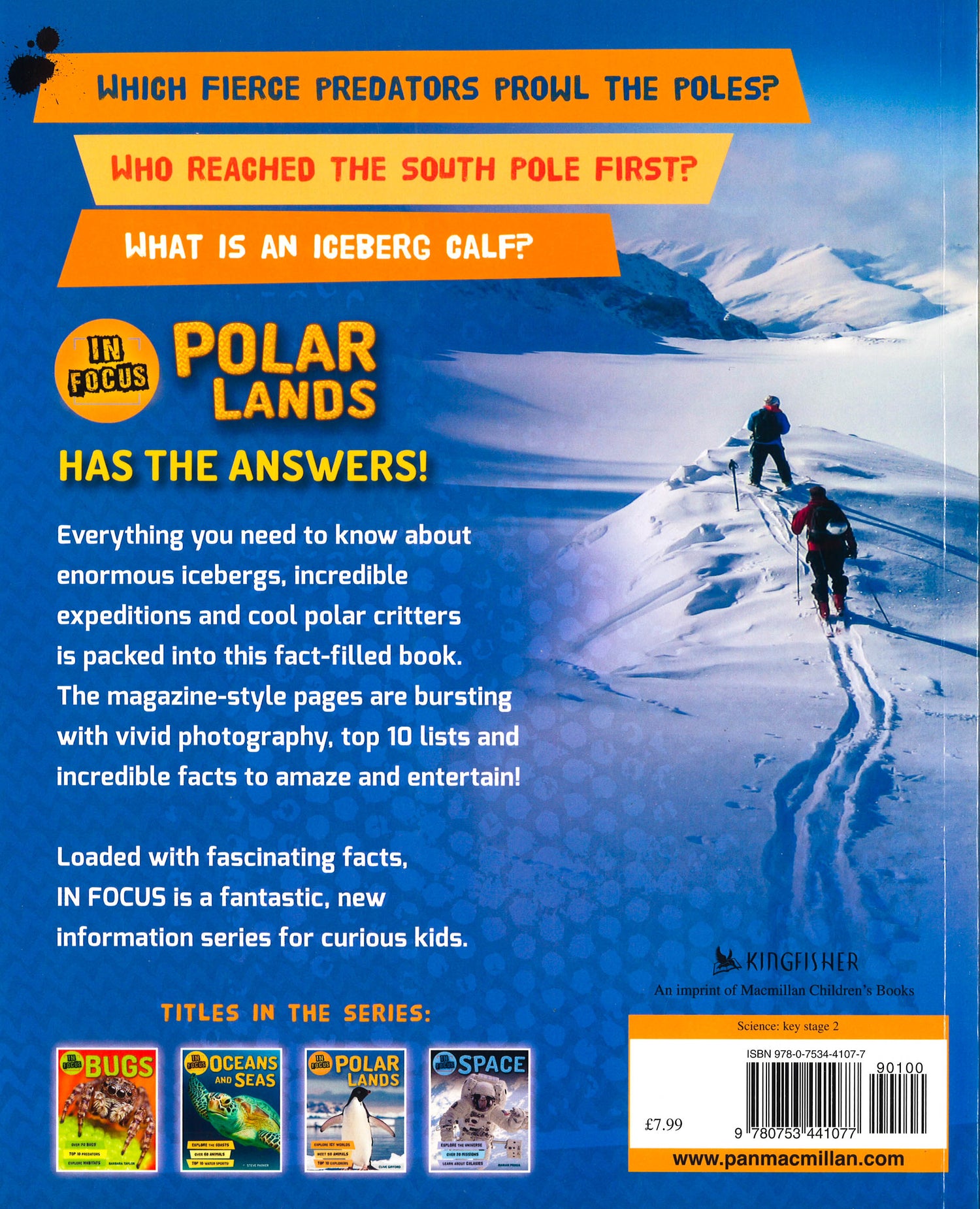 What is a glacier calf? Why don't polar bears hunt penguins? Which animals turn white in winter? In Focus:Polar Lands has the answers! In Focus is a cool, new information series that's perfect for curious kids. These fun books feature modern, magazine-style pages, including top 10 lists, fast facts, quickfire quizzes and more! With pages packed with vivid photography and fun facts, kids will have fun learning about the world around them! Each In Focus book features a contents page, glossary and index, plus front and end gatefold flaps on the cover.