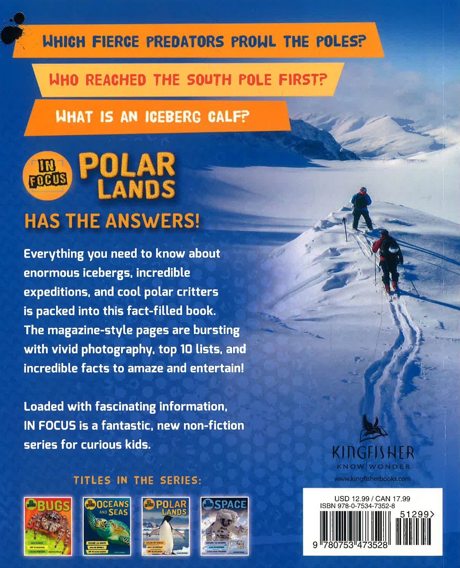 What is a glacier calf? Why dont polar bears hunt penguins? Which animals turn white in winter? In Focus: Polar Lands has the answers!