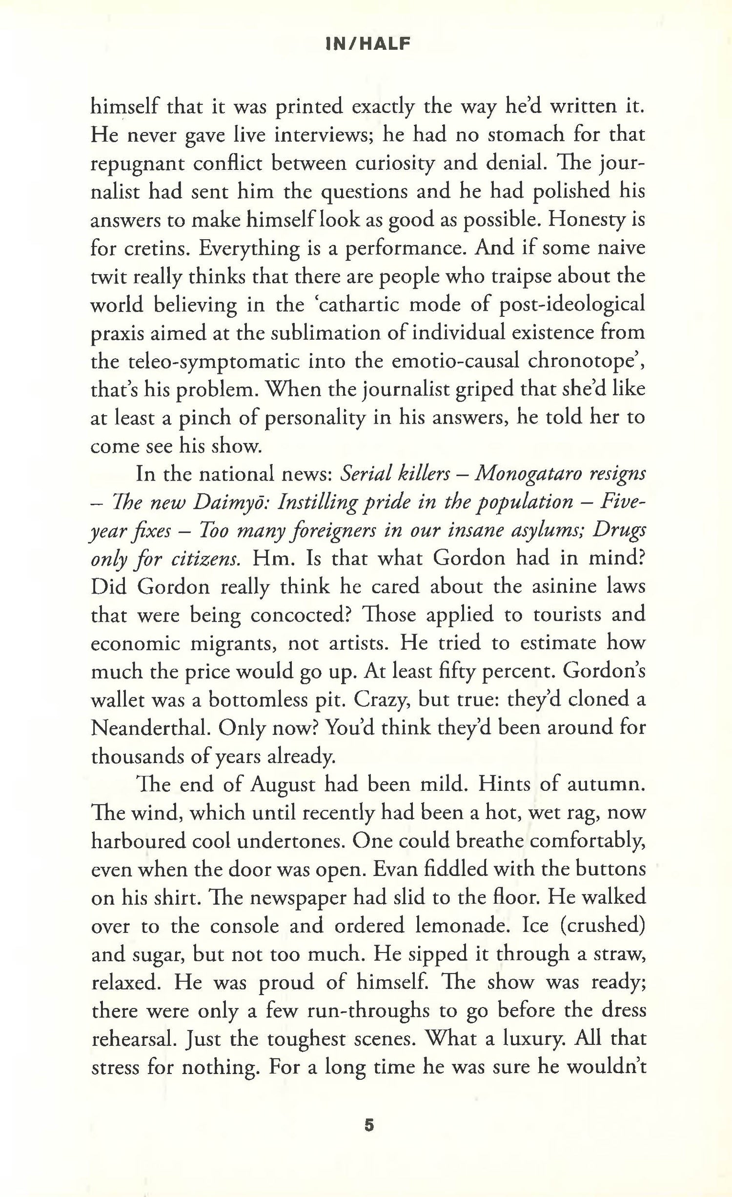 It's 2036, twenty-five years after the 'Great Shutdown' destroyed the global communications network. In this post-Internet world, three childhood friends come together to celebrate their fiftieth birthdays. But with Zoja, a radical poet; Evan, an addict theatre director; and Kras, a former minister for war in attendance, this was never going to be a subdued occasion...