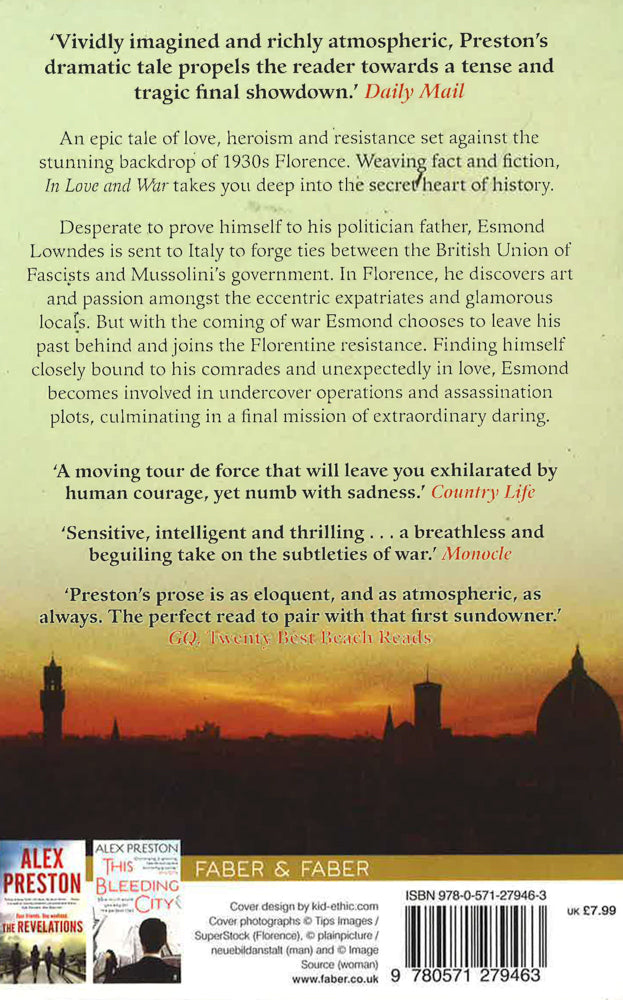 Desperate to prove himself to his politician father, Esmond Lowndes is sent to Italy to forge ties between the British Union of Fascists and Mussolini's government. In Florence, he discovers art and passion amongst the eccentric expatriates and glamorous locals. But with the coming of war Esmond chooses to leave his past behind and joins the Florentine resistance. Finding himself closely bound to his comrades and unexpectedly in love, Esmond becomes involved in undercover operations and assassination plots, culminating in a final mission of extraordinary daring.