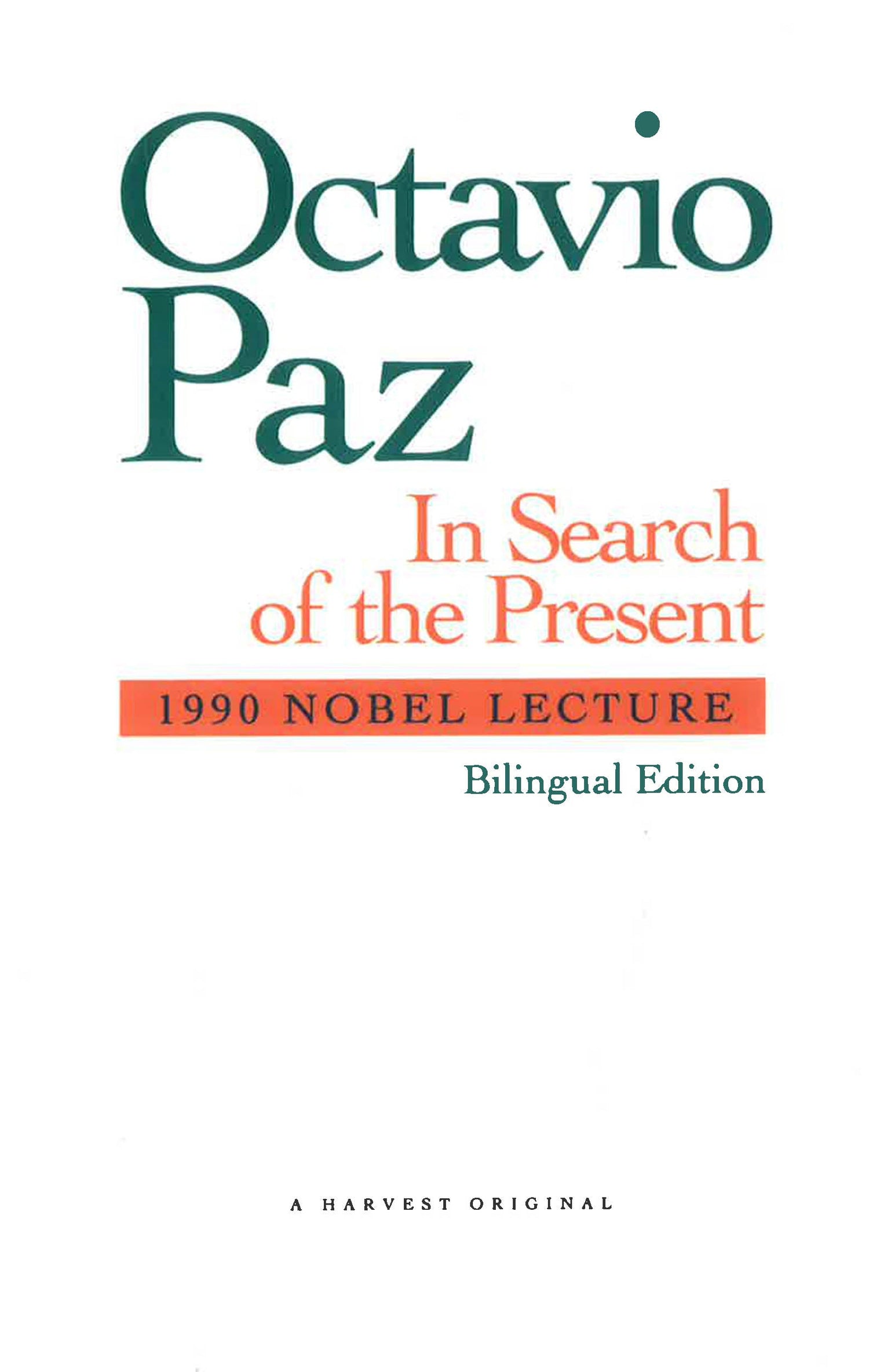 The speech delivered by Paz in acceptance of the 1990 Nobel Prize for Literature, in which he discusses gratitude, separateness, and modernity. Published in a handsome bilingual edition. Translated by Anthony Stanton.