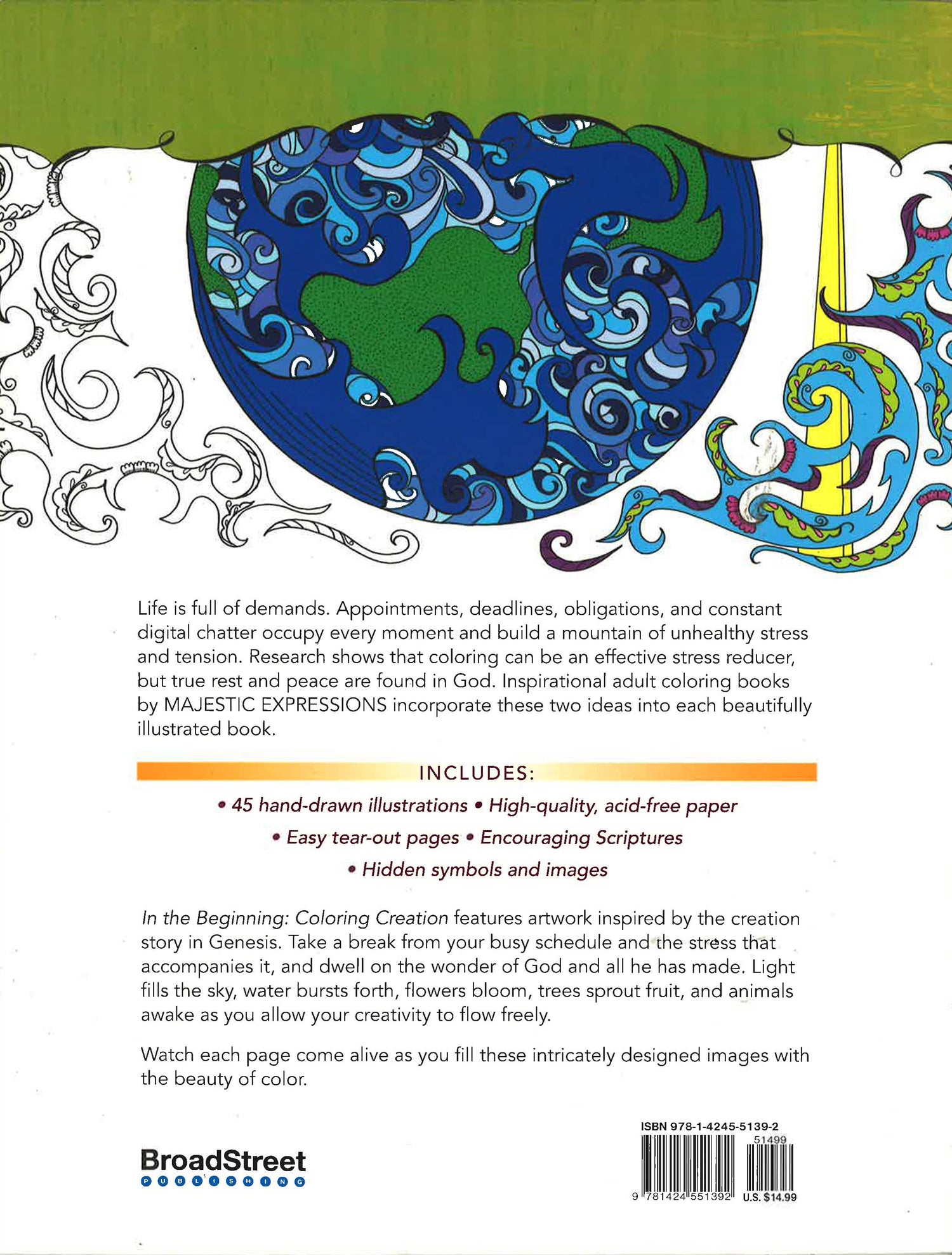 ponder the peace, joy, hope, and encouragement found in the incredible story of creation? Take a break from your busy schedule, and focus on filling the intricately illustrated pages with the beauty of colour. Watch each page come alive as you allow your creativity to flow freely. Spend some quiet time relaxing with In the Beginning: Colouring Creation. The worries of life can wait.